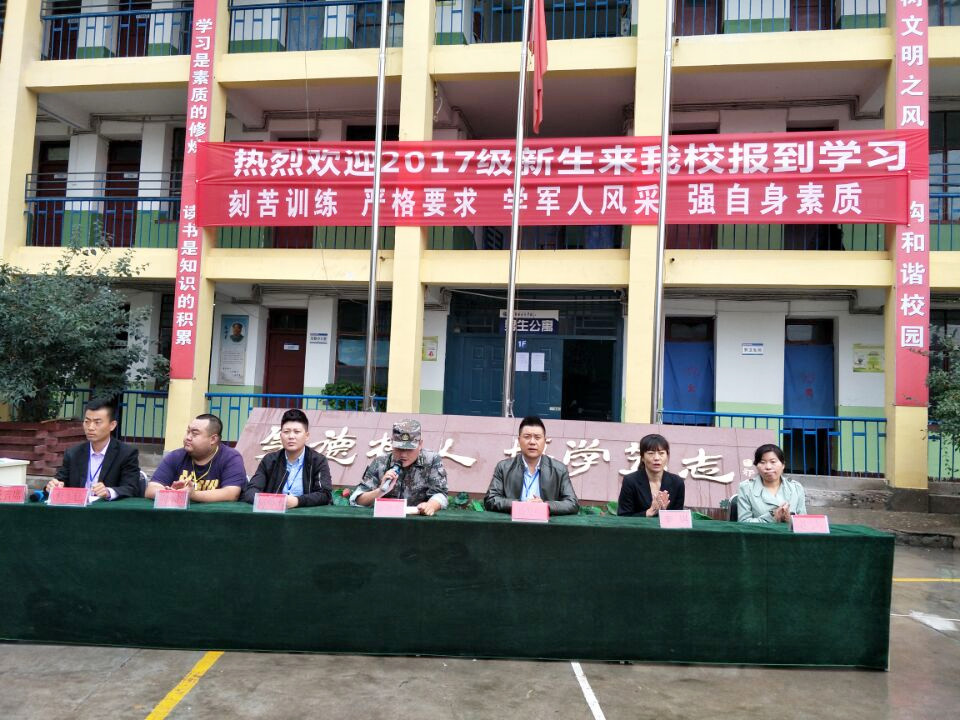 兰州商业会计学校五泉校区2017级新生军训于2017年8月26日再五泉校区正式启动,学校副校长杨发中、校办公室主任李琪、教务部主任赵雪琴、学工部主任何俊杰、学生科科长周老师、校团委杜老师、驻训部队领导、各班班主任及2017及全体新生参加仪式,仪式由杜老师主持。