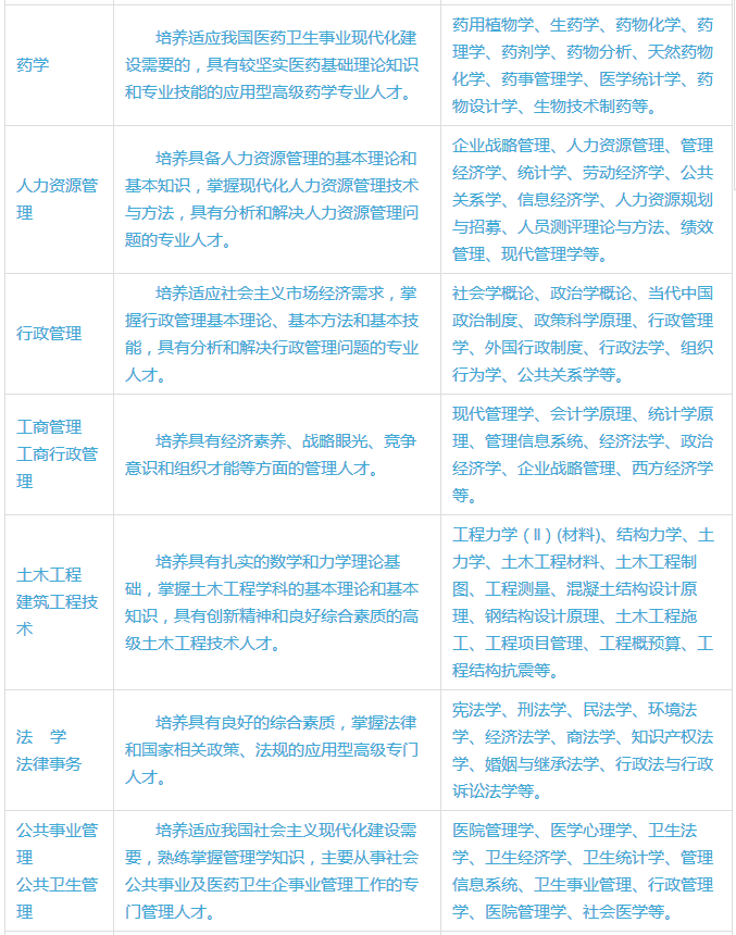 3.统考科目按不同学历起点和不同专业类别确定。