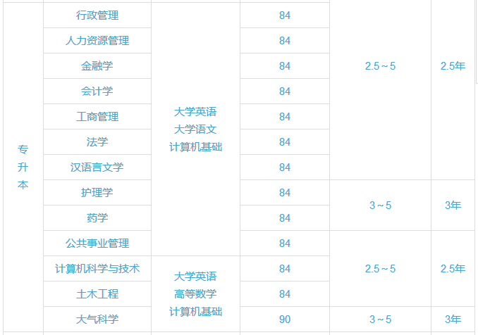 ① 高中起点本科学生的统考科目是:计算机科学与技术、大气科学专业为“大学英语(B)”、“计算机应用基础”和“高等数学(B)”,其余专业为“大学英语(B)”、“计算机应用基础”和“大学语文(B)”。