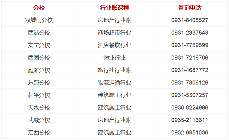 号外!号外!兰州商业会计学校会计实操课程火热来袭!八大行业全盘账训练,想要学透全盘账,像老会计一样熟练全盘账做账流程的亲们,马上拨打我校各分校电话,抢先预约吧!