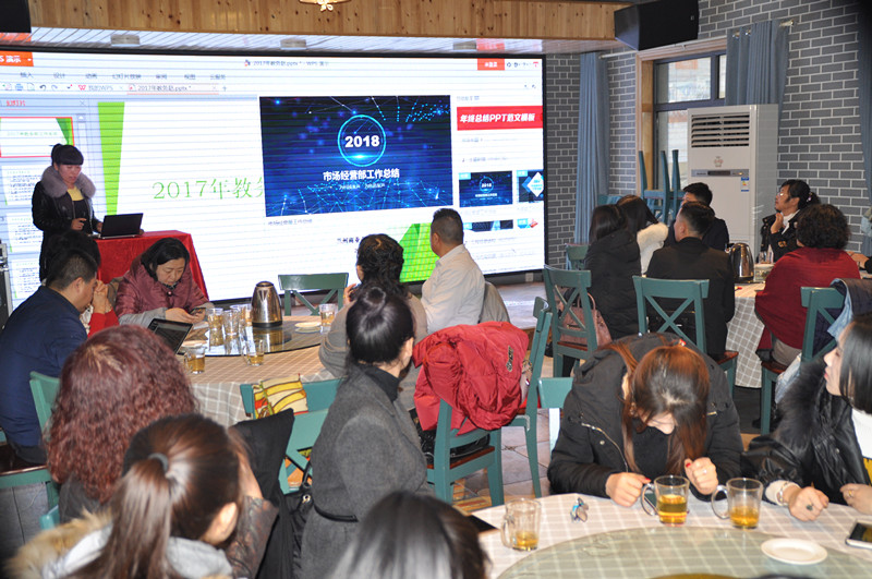 会议第一项,副校长刘一燕做2017年培训部工作总结及2018年培训部工作发展规划,刘副校长回顾了2017年学校在校长的带领下组织的各类活动,分析了各教学部主任及员工2017年业绩考核中体现的特色,以精准的数据分析了各分校活动组织情况及课程收入情况。并就2018年的工作从团队建设、环境设施改善、服务提升、安全防范等方面提出了具体的要求,明确了2018年任务考核方式及各教学部任务完成技巧等,刘副校长指出,新的一年,承载新的梦想,开启新的篇章、新的征程,我们要砥砺前行、共创辉煌。