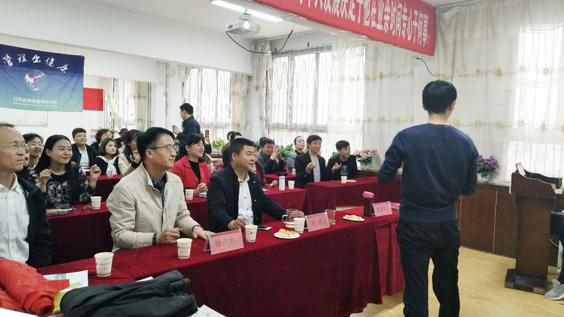 甘肃省健康管理研究会赵润元副秘书长以生动形象、深入浅出、通俗易懂的讲授风格为参会人员普及了健康管理的知识,他强调了时间管理的重要性,从饮食、睡眠、行为习惯的养成等方面介绍了健康养生的基本知识。指导大家,加强自我保健,自觉养成良好的生活和工作习惯,保持健康体魄。最后,甘肃省太极拳协会王宏毅秘书长以刚柔并济、急缓相间、行云流水的太极拳这种被列入中国首批国家非物质文化遗产名录,极富中国传统民族特色元素的运动形式生动演绎了它颐养性情、强身健体、内外兼修的功能。(刚柔并济太极拳)