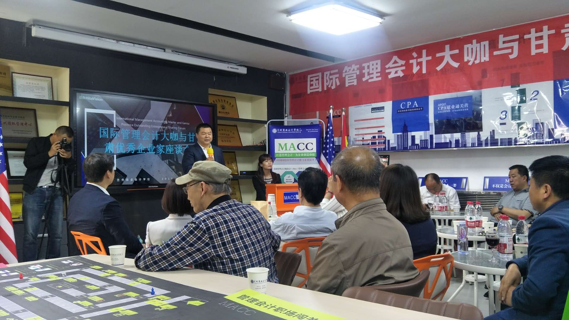 兰州商业会计学校校长祁绪在座谈会上致辞,对远道而来的特邀嘉宾 Paul Juras一行人等及参会的甘肃优秀企业家表示热烈的欢迎和衷心的感谢。祁校长阐述了兰州商业会计学校在推动管理会计在甘肃省的落地与发展上所做的工作,他指出,要让管理会计助推甘肃企业的发展,同时也助力甘肃财会人员的升级转型,以推动甘肃经济的发展。(兰州商业会计学校祁校长在座谈会上致辞)