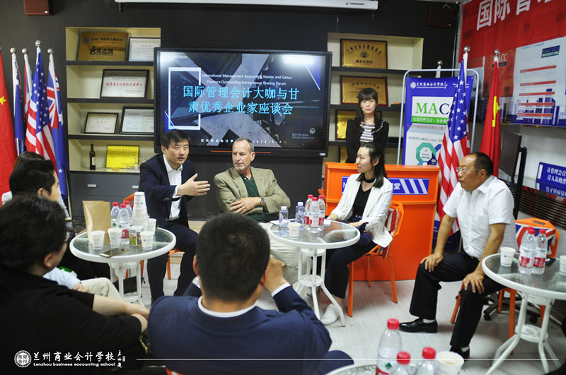 主题发言结束后,与会嘉宾就企业中现实存在的问题与特邀嘉宾进行了深入座谈,与会企业家从企业发展运营、财务管理、战略规划等各方面提出了不同的制约企业发展的难题。兰州华锐物流股份有限公司总裁董洪就企业存在的资金链问题,恳请Paul Juras教授和在场专家予以指导,Paul Juras教授、浦教授、马会长针对这一问题运用生动的案例逐一做了分析和解答,财政厅农发办项目评审处原处长刘炳义先生也发表了自己的看法。现场嘉宾幽默风趣的比喻和案例让整场活动弥漫着愉悦融洽的气氛,一场美国教授与中国企业家的智慧交流会在兰州商业会计学校激情开展。(与会嘉宾交流探讨)