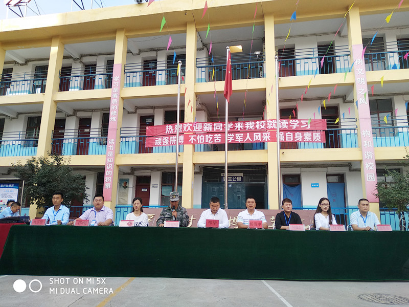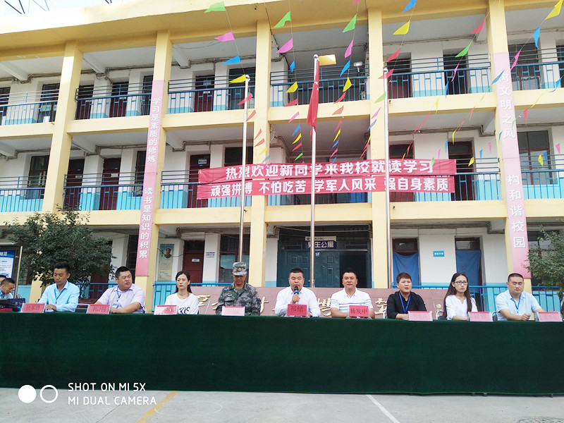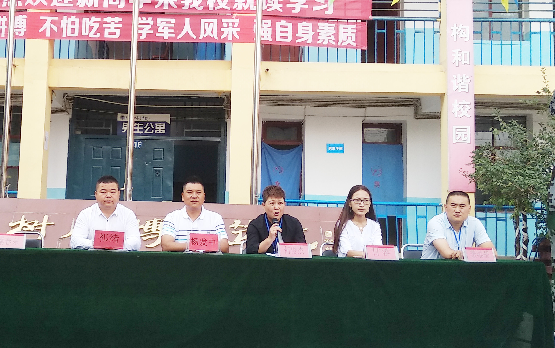 兰州商业会计学校新生军训动员大会于2018年8月26日在五泉校区隆重举行,学校校长祁绪、副校长杨发中、教导队领导蔡春东同志、办公室主任李琪、教务部主任甘蓉、学工部主任何俊杰、保卫科科长祁刚、学生科科长董维基、校团委杜军锋、各班班主任及2018及全体新生参加仪式,仪式由杜军锋老师主持。(军训动员大会)