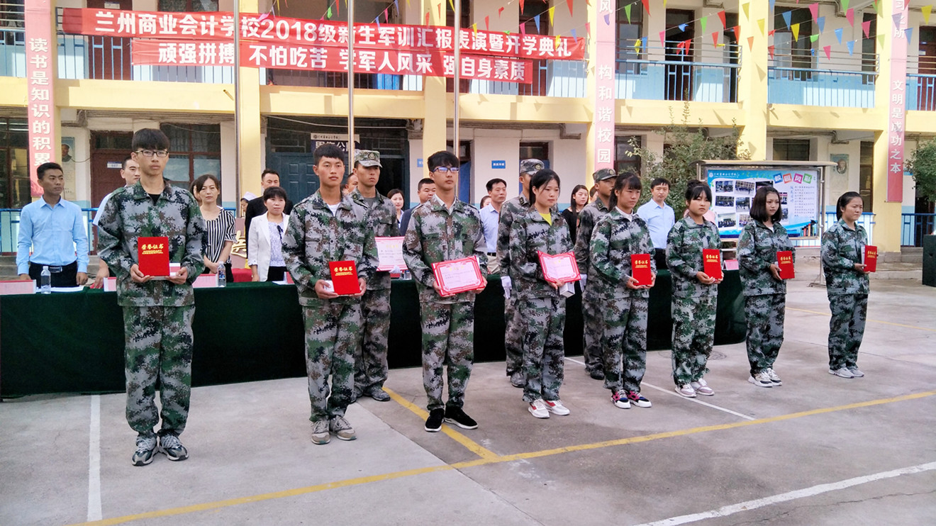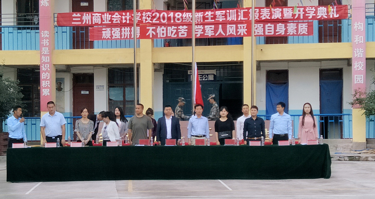 9月3日上午,兰州商业会计学校2018级新生军训汇报表演暨开学典礼在五泉校区隆重举行,学校校长祁绪、副校长赵雪琴、学工部主任何俊杰、教务部主任甘蓉、综合办主任李琪、双城门、西站、安宁、东部、雁滩教学部主任、驻训部队领导及部分班主任出席了此次典礼,军训教官带领我校2018级全体新生参加了典礼,典礼由校团委书记杜军锋老师主持。