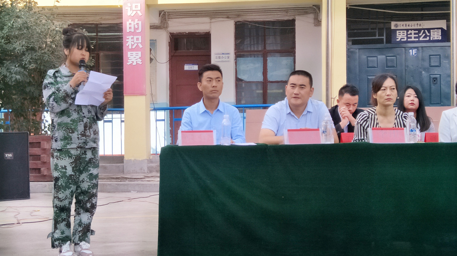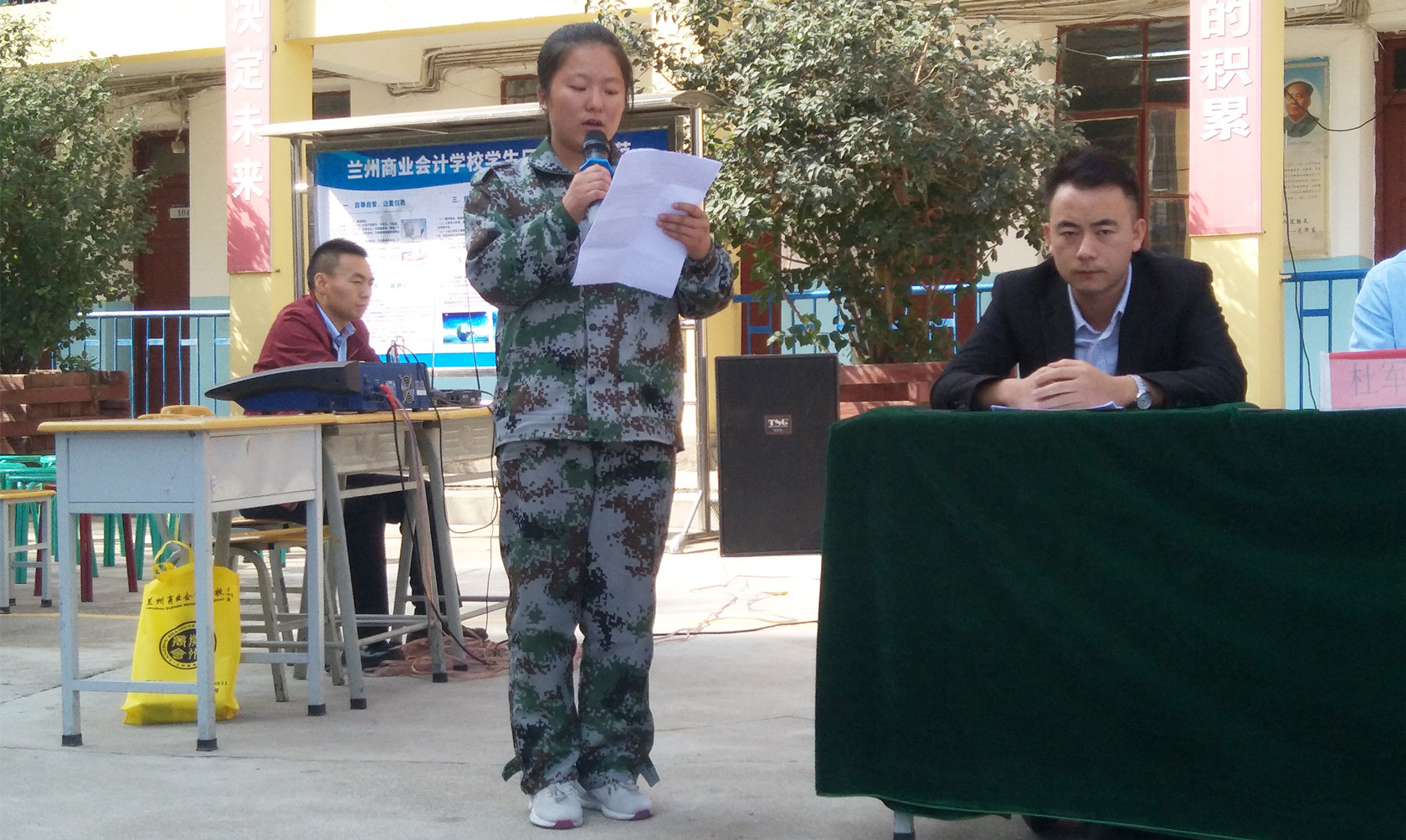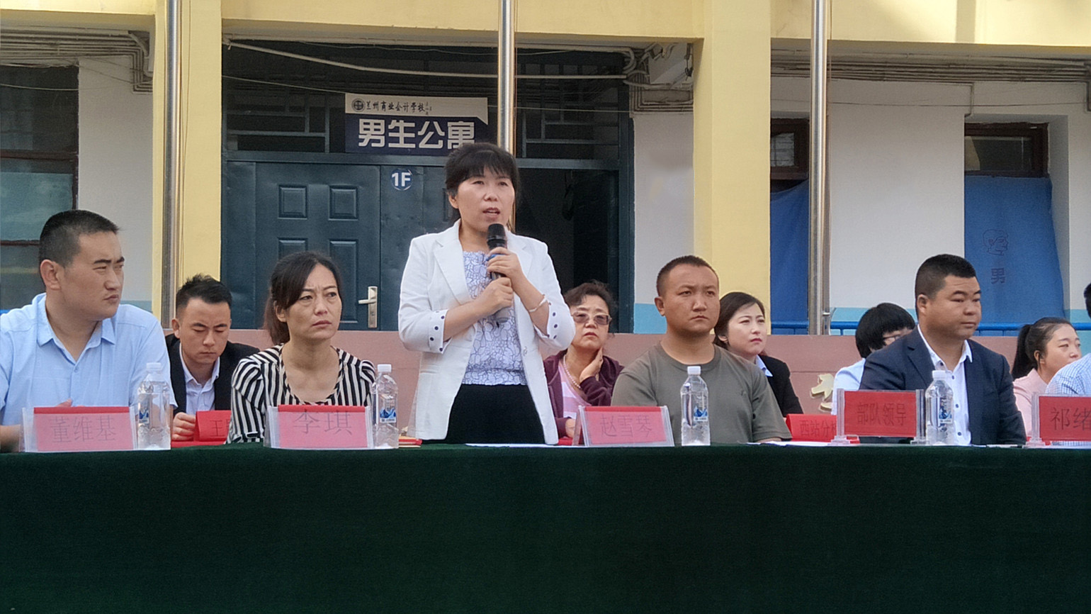 (学工部何主任在开学典礼上发言) (教务部甘主任在开学典礼上发言)