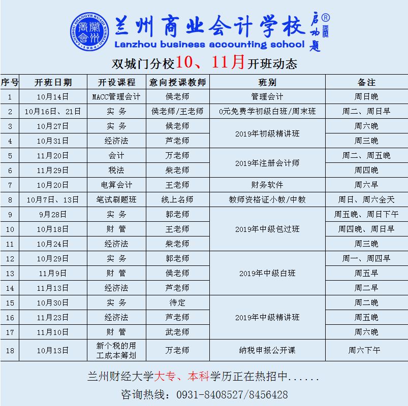 双城门分校10月11月开课动态