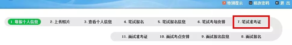 ⑤点击第7步”笔试准考证“,则可以看到自己的完整准考证信息,鼠标移到页面最下方,可以直接打印或下载到本地(如图5)图5