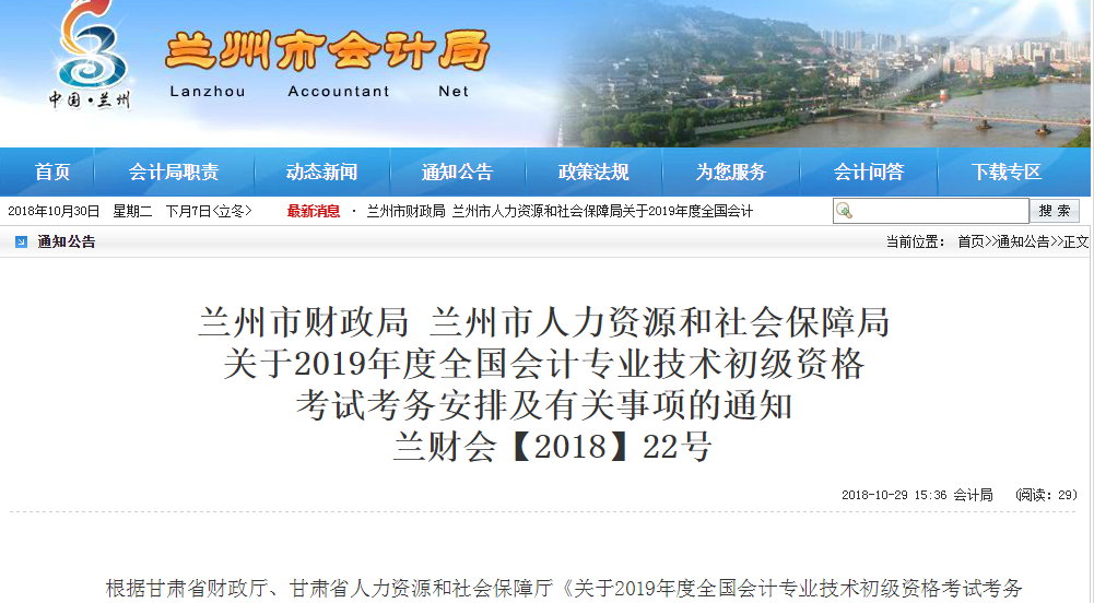 5.2019年5月31日前,下发初级资格考试成绩,并在“全国会计资格评价网”和“甘肃省财政信息网、兰州市财政局官网、兰州市会计局微信公众平台”公布。