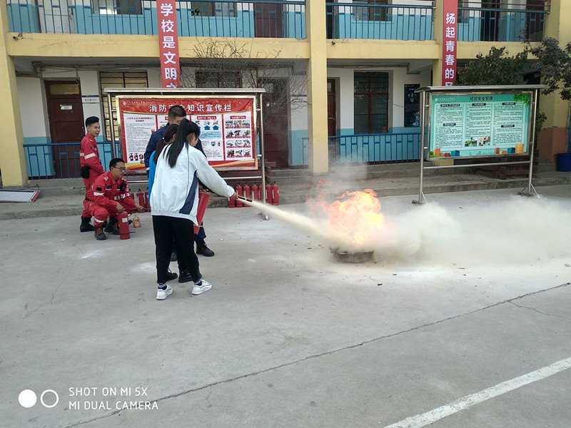 (学生参与灭火器使用演练)