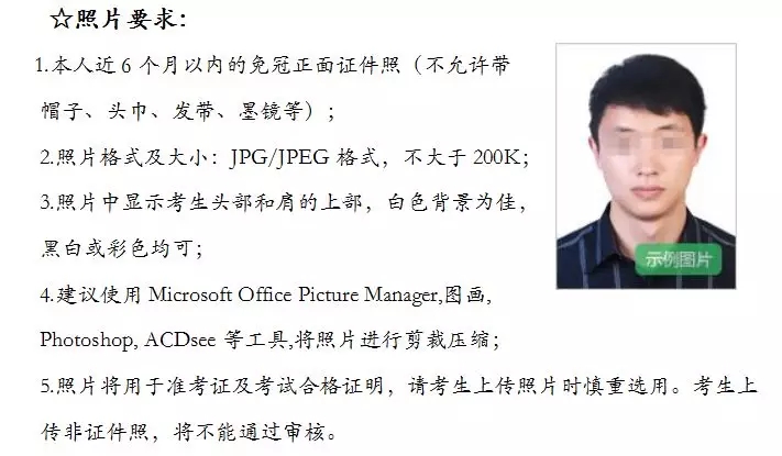 5.所有考生笔试报名前需要重新进行注册、填报个人信息并上传个人照片,重新注册操作不影响考生已获得的成绩。注册上传照片将用于准考证和考试合格证明,请考生上传照片时遵守规范、慎重选用。