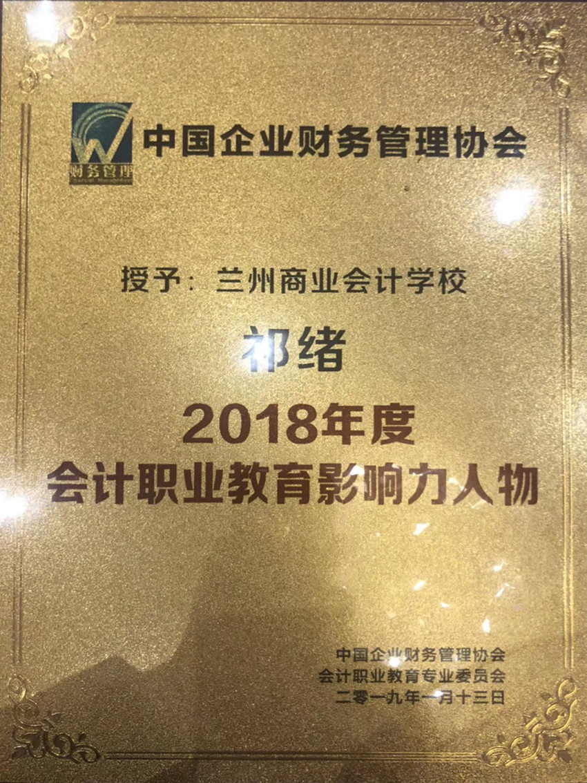 (兰州商业会计学校校长祁绪荣获“2018年度·会计职业教育影响力人物”大奖)