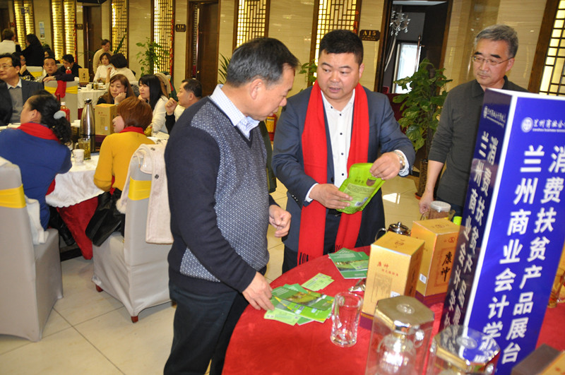 2018年,兰州商业会计学校在精准扶贫培训工作中取得了巨大的成绩。2019年,学校将会继续推进精准扶贫培训工作,大力助推消费扶贫,搭建社会力量参与脱贫攻坚的服务平台,动员社会各界扩大贫困地区产品和服务消费,助力贫困地区打赢脱贫攻坚战。在本次答谢会上,兰州商业会计学校不仅设立了“消费扶贫产品展台”,同时也为贫困地区特色产业提供了合作洽谈的平台,兰州市七里河区西果园镇长前来洽谈百合特色产品的合作,省工商联张益民副主席在祁校长的引领下参观了兰商“消费扶贫产品展台”,展区吸引了不少嘉宾的关注。