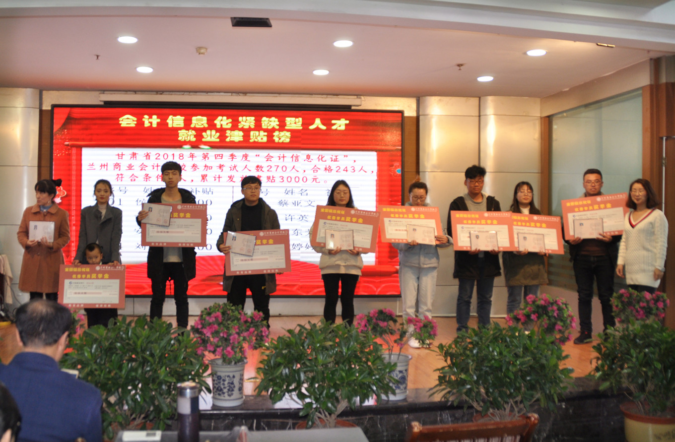 甘肃首届MACC管理会计2018年第四季度考试、甘肃省全国会计信息化应用能力2018年第四季度考试在兰州商业会计学校组织下顺利完成,考生们都取得了非常优异的成绩,成功拿下管理会计证书、会计实务信息化应用能力证书。在本次活动上,兰州商业会计学校祁校长、王书记、包老师、贾老师为通过考试的优秀学员颁发证书、奖学金,并合影留念。
