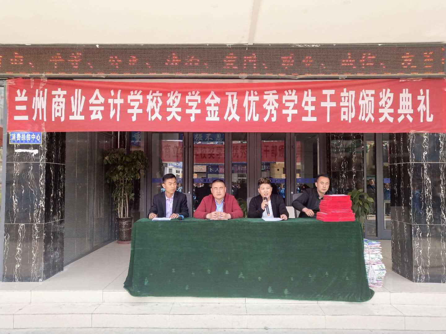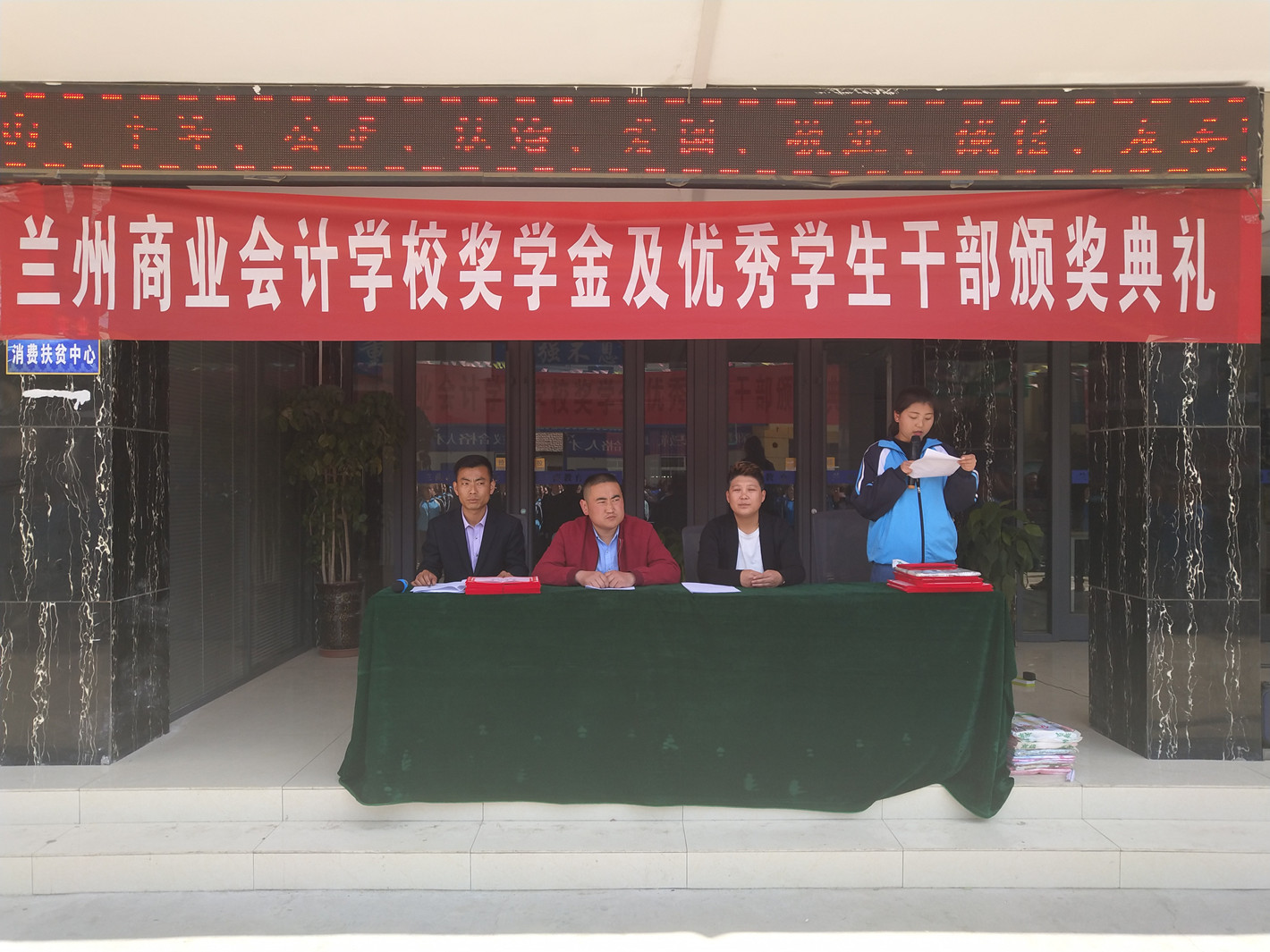 又是一年春光好,正当扬帆奔前程。在这个春意盎然、草长莺飞的季节。4月15日下午14:30我校全体师生在操场集会,隆重举行2017-2018年度奖学金及优秀学生干部颁奖典礼。此次评优活动是根据兰州商业会计学校2018年第91号文件精神,在评优工作领导小组的统筹规划和集中管理下,对全校符合评选条件的同学在公开、公平、公正和民主集中的原则下,严格按照程序组织评选的。最终,共有72名学习成绩优秀的学生获得奖学金,共计奖金112200元整。共有44名学生获得“优秀学生干部”荣誉称号。