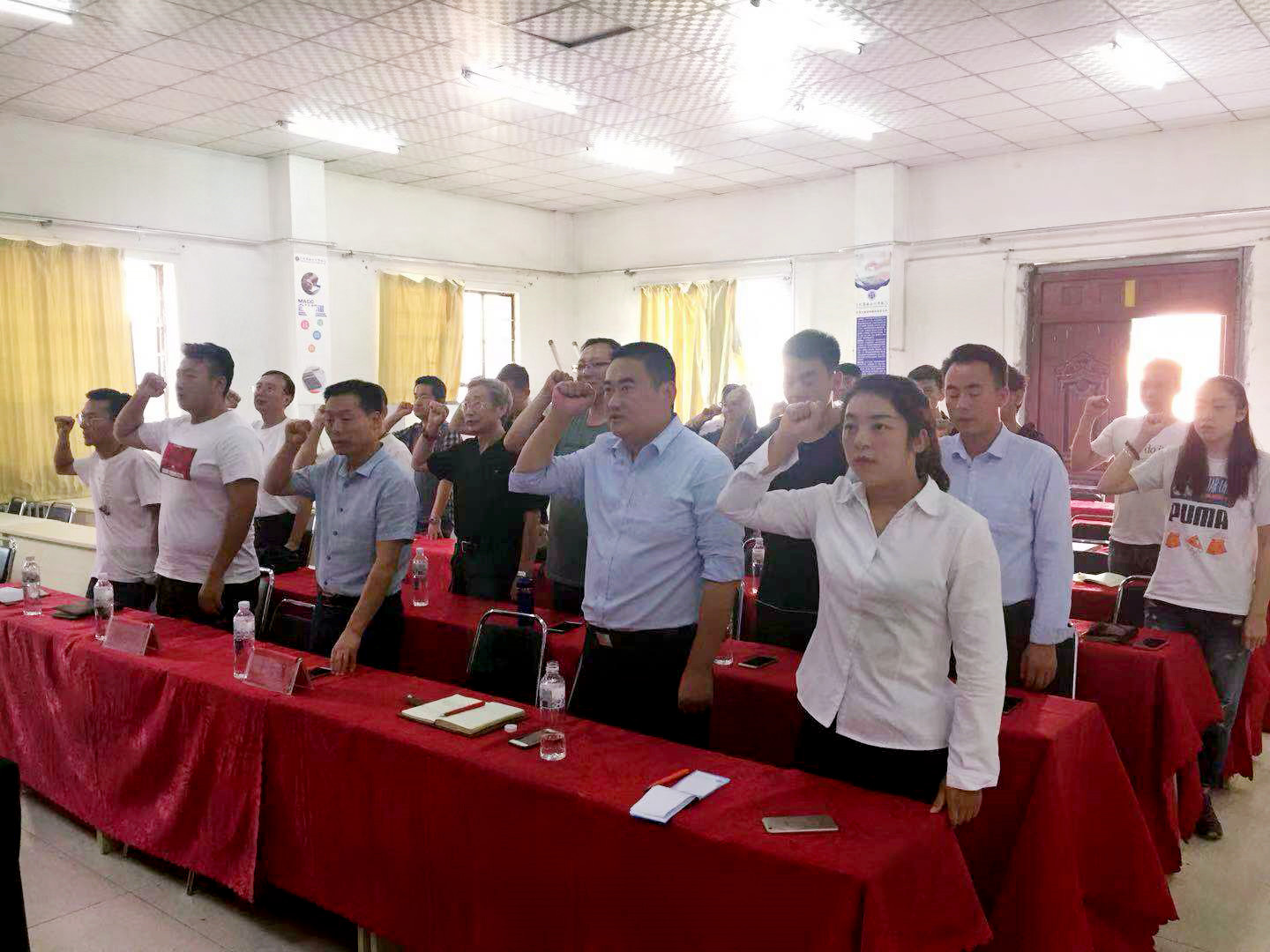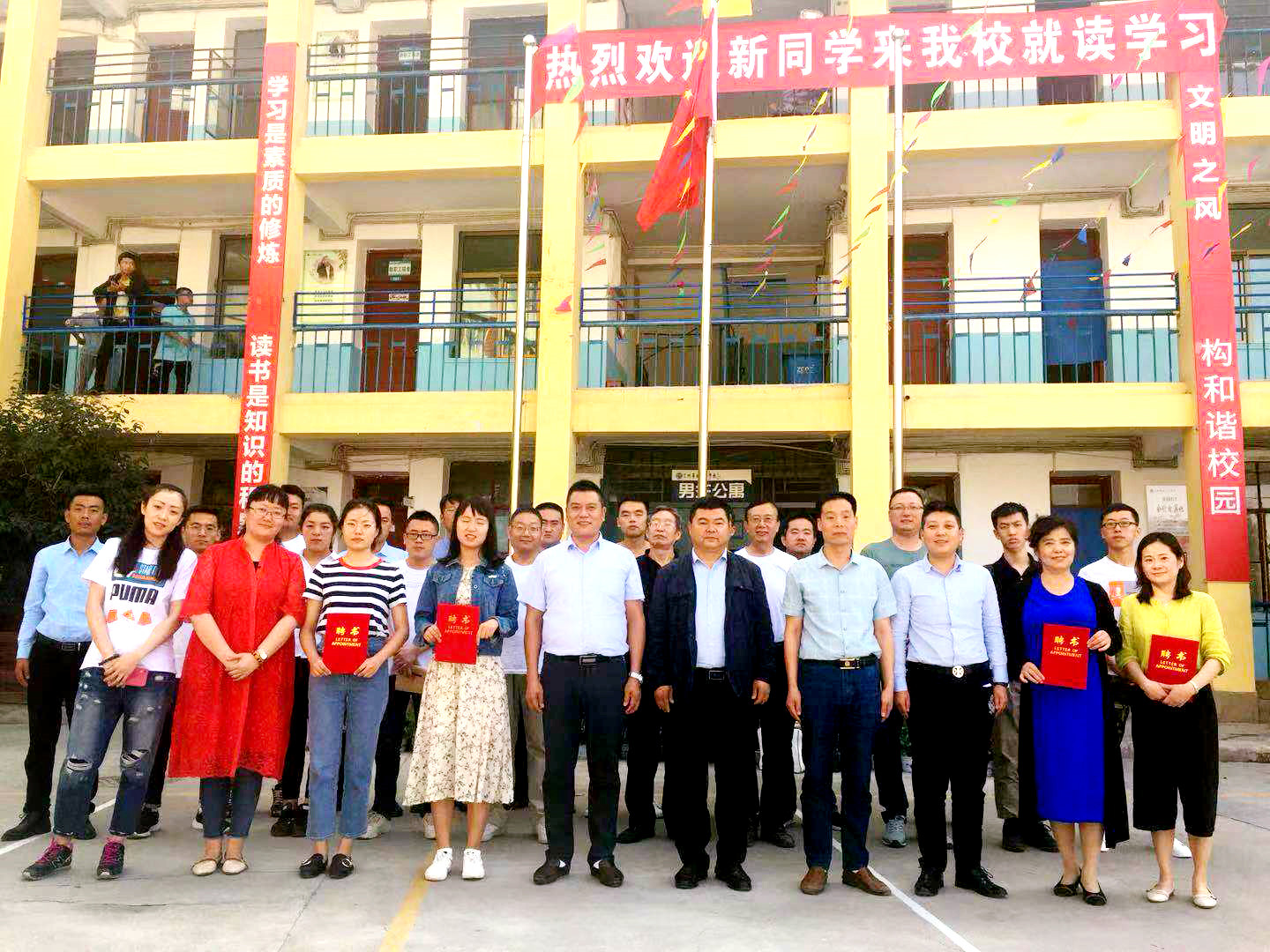 在大会上,全体教师宣誓:我们会,认真贯彻党的教育方针,不忘初心,砥砺前行,忠于党的教育事业,精诚团结,言传身教,刻苦钻研,甘于奉献,为培养社会合格人才而努力奋斗。