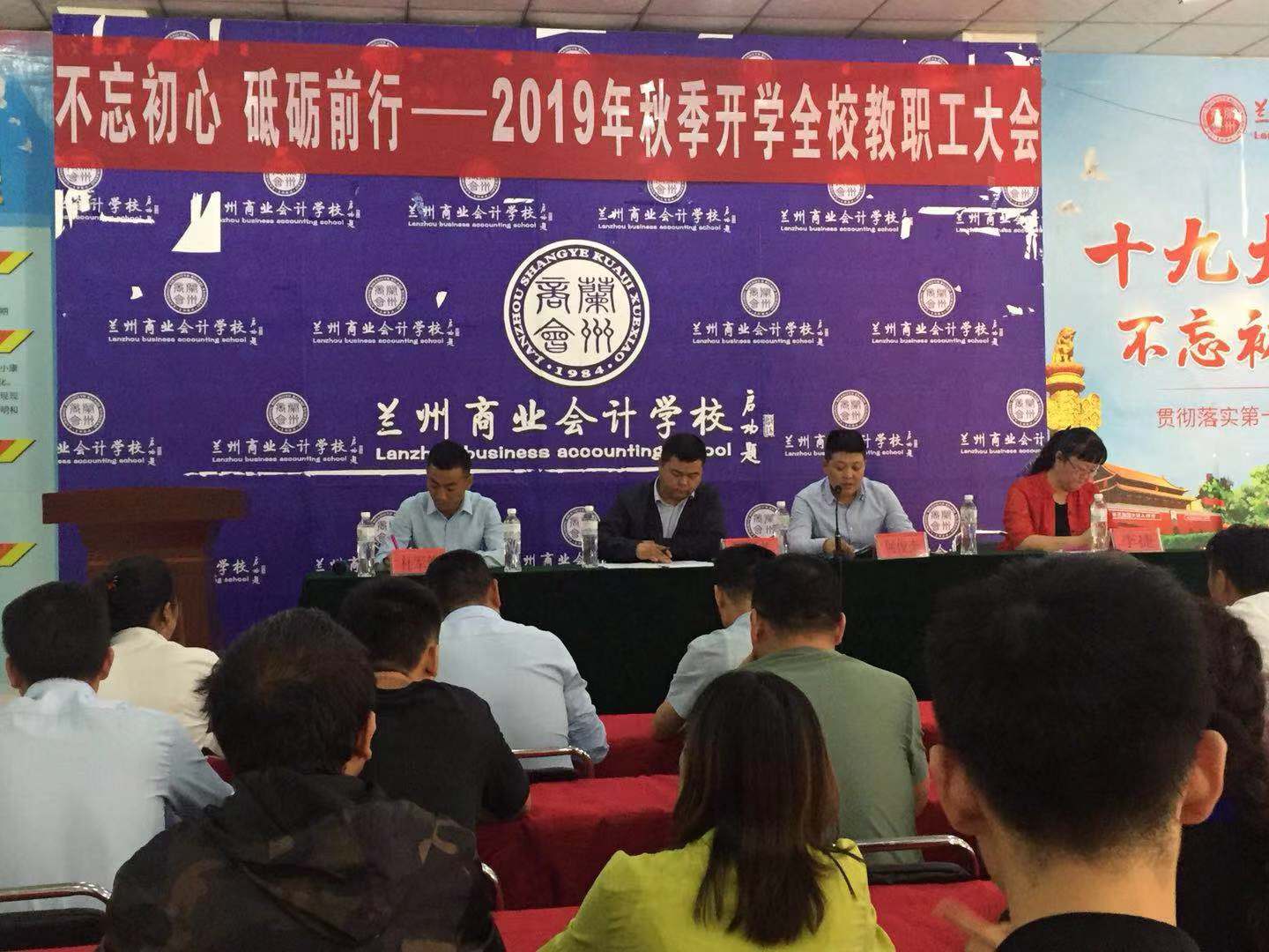 2019年9月3日,兰州商业会计学校在五泉校区隆重召开2019年秋季学期教职工大会,兰州商业会计学校校长祁绪、书记王今强、校区主任何俊杰、教务科科长李捷、校区任课老师及校区教职员工出席了此次会议。会议由兰州商业会计学校校团委书记杜军锋主持。