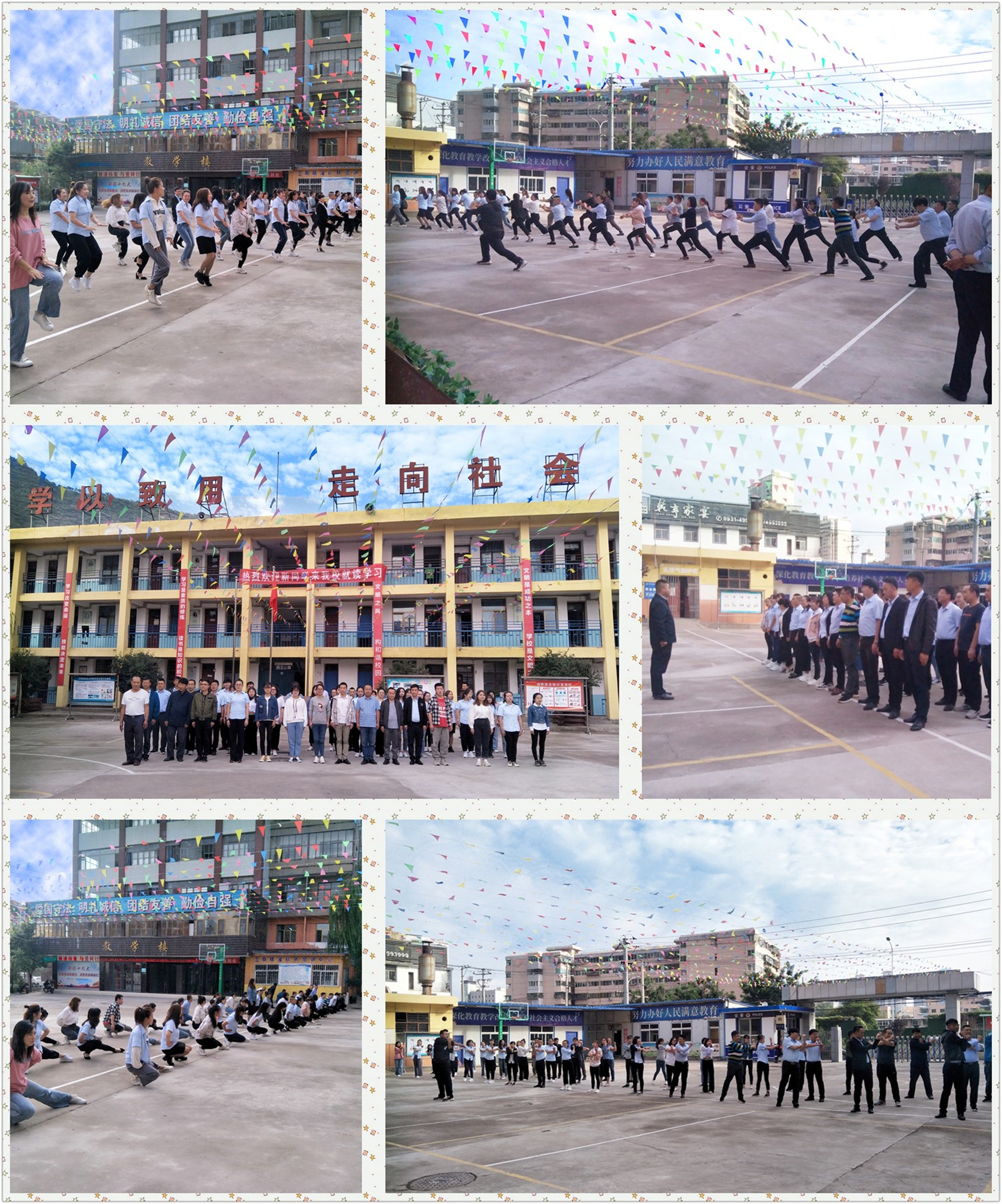 九月的秋风送来阵阵清爽,九月的阳光捧上热情的祝福,九月的校园,彩旗在阳光的照耀下绚丽夺目,美丽的校园里教师们神采奕奕,精神饱满地站立在清晨的操场上,为庆祝教师节、加强教师之间的交流互动,增强教职工之间的团结协作精神及凝聚力,一场富有激情和意义的热身训练在五泉校区操场上举行。兰商8月份工作总结大会暨庆教师节、中秋节活动也在热情洋溢的训练中拉开了序幕。
