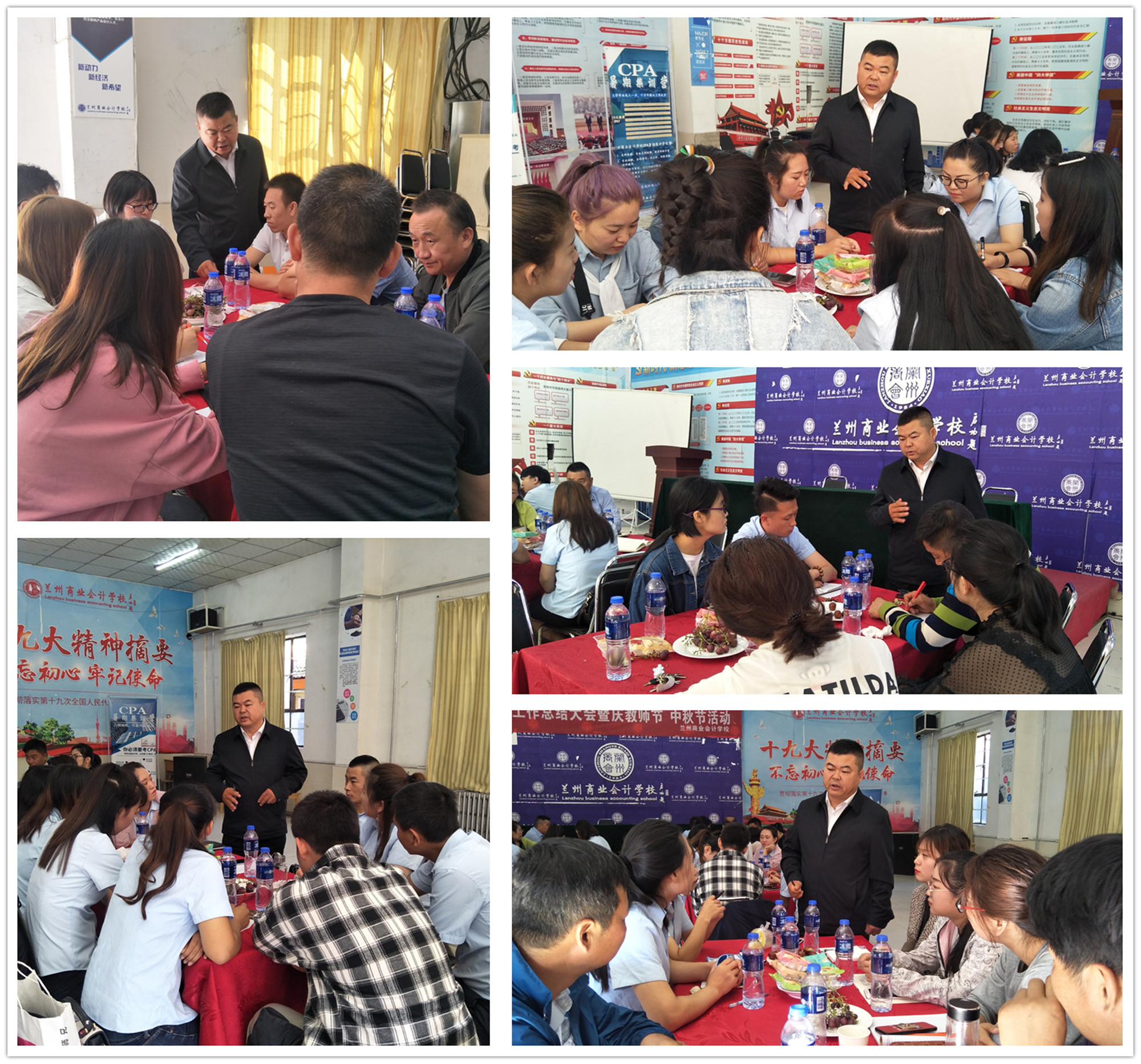 学校校长祁绪在活动上作了总结性发言,对参会的全体教职员工表达了节日的祝福。祁校长回顾了8月份学校的各项工作,提出了下一步工作的方向。祁校长希望全体教职员工,要顺应形势、加强学习、不断磨练,提升个人业务能力;要抱团取暖,依靠平台发展,充分发挥团队精神,提高团队凝聚力,与兰商共同发展;要规范自我, 注重个人品质修养的培养。祁校长勉励全体员工要感恩学校、感恩社会、积极工作、快乐生活。最后,祁校长为全体教职员工送上了节日的问候和祝福。