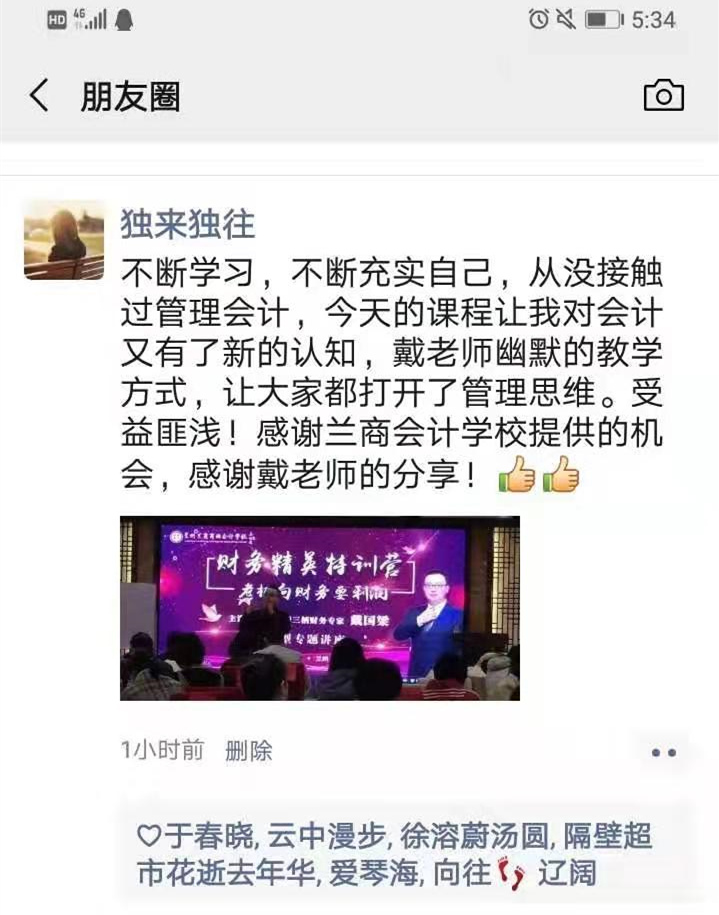 格局成就未来,坚持决定成败!你看不到的分分秒秒,都有人在奋力奔跑。两百多人一起学习、一起共进午餐、共话财会学习、工作感悟。也许,很多人并不觉得一整天的课程能改变什么,但人与人之间的差距何尝不是这么一天一天拉开的。在兰商,梦想,凝聚了一群志同道合的人,相信学习也能成就这一群人!