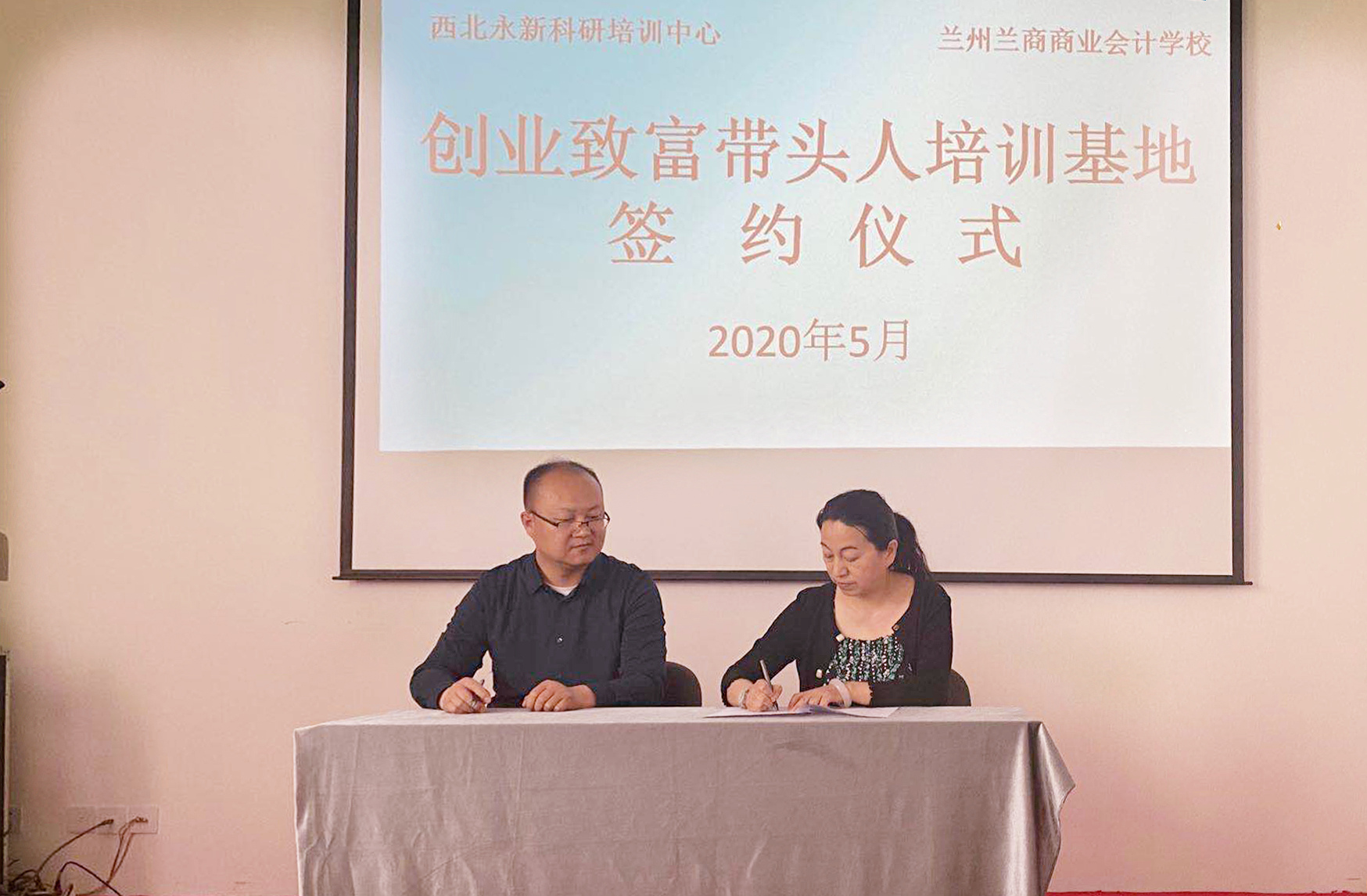兰州兰商商业会计学校与西北永新科研培训中心签订“创业致富带头人培训基地”合作协议