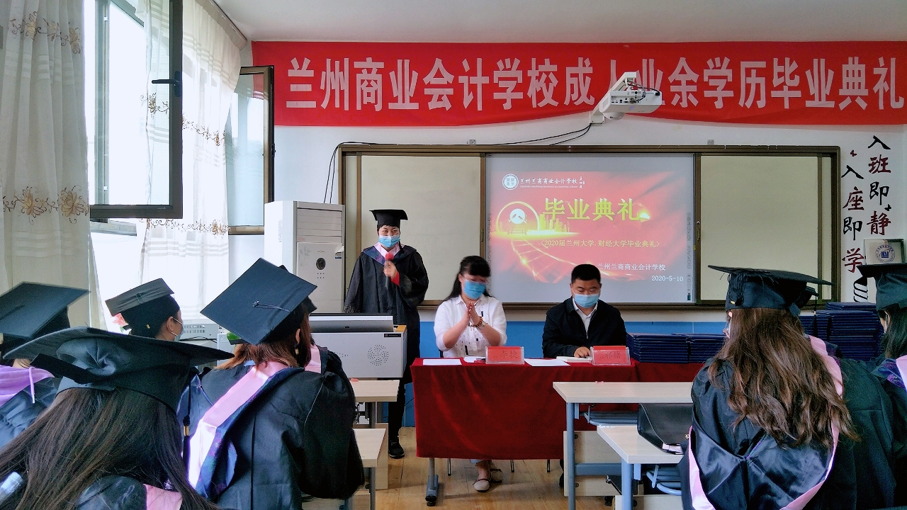 兰商教育集团于2020年5月10日在双城门校区隆重举行了“兰州商业会计学校成人业余学历毕业证颁发典礼”活动,兰商教育集团董事长、兰州商业会计学校校长祁绪、副校长赵雪琴、办公室主任李琪、学历部主任何俊杰等领导及兰商顺利获取兰州大学网络教育专本科、兰州财经大学自考专本科学历毕业证的学员参加了此次活动,活动由兰商教务部主任李捷主持。