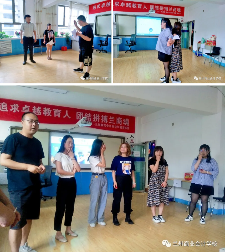 2020年7月13日,兰商教育集团会计板块拓展训练活动在双城门校区拉开帷幕。本次活动的主题为“追求卓越教育人,团结拼搏兰商魂”,旨在通过室内拓展训练、趣味游戏等方式,以进一步加强兰商集团会计板块集体凝聚力,提升团队协作精神,促进员工间的相互了解。加强员工对兰商文化的深入体验,增强员工归属感。