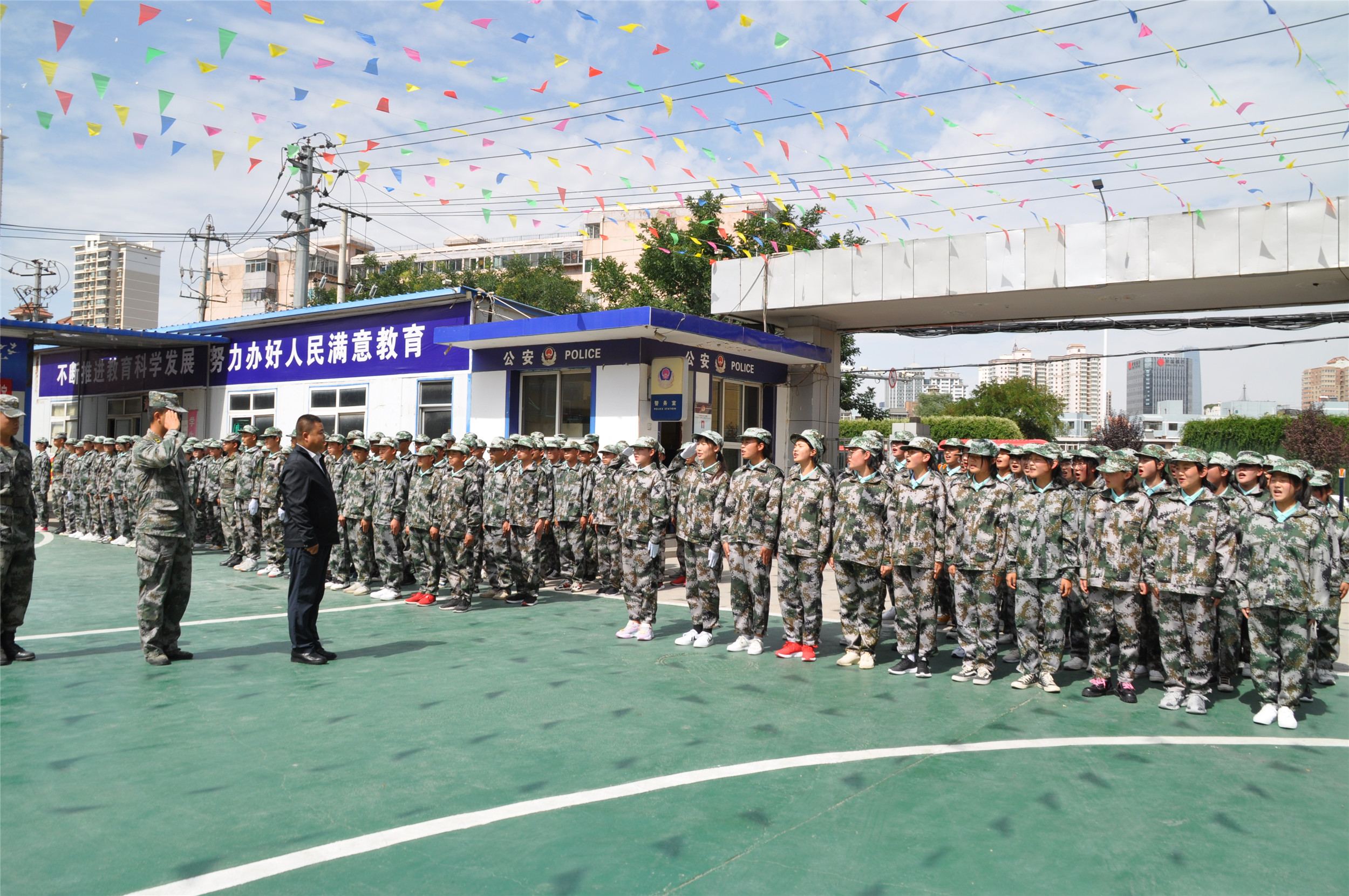本次新生军训汇演暨开学典礼的举行,标志着新学年已经开始,新学期,新起点,我们坚信,在兰商全体师生的共同努力下,上下齐心,团结一致,励精图治,继往开来,以更饱满的激情投入到工作和学习中,共同绘制更闪亮、更美好的未来!