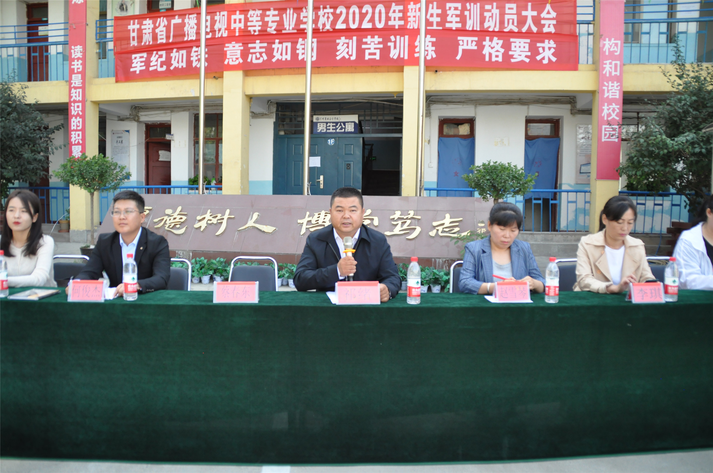 军训汇演结束之后,新生开学典礼正式开始。甘肃省广播电视中等专业学校(兰商校区)校长祁绪在典礼上致辞,祁校长代表学校对军训教官致以崇高的敬意,代表全校师生向2020级新生表示祝贺。祁校长向新生介绍了学校的基本情况,并对学生们提出具体要求和殷切期望,要求新同学要保持军训中养成的良好作风,自律、守时、守信,养成不断学习提升的习惯,珍惜少年时光,求取真知、练就技能、成就人生。祁校长要求学校各级领导干部、班主任及老师在生活上、学习上以及社会实践中做到精心管理、相互尊重。祁校长希望全校师生在兰商这个大家庭里,团结互助、砥砺前行,共同谱写兰商新的辉煌篇章。