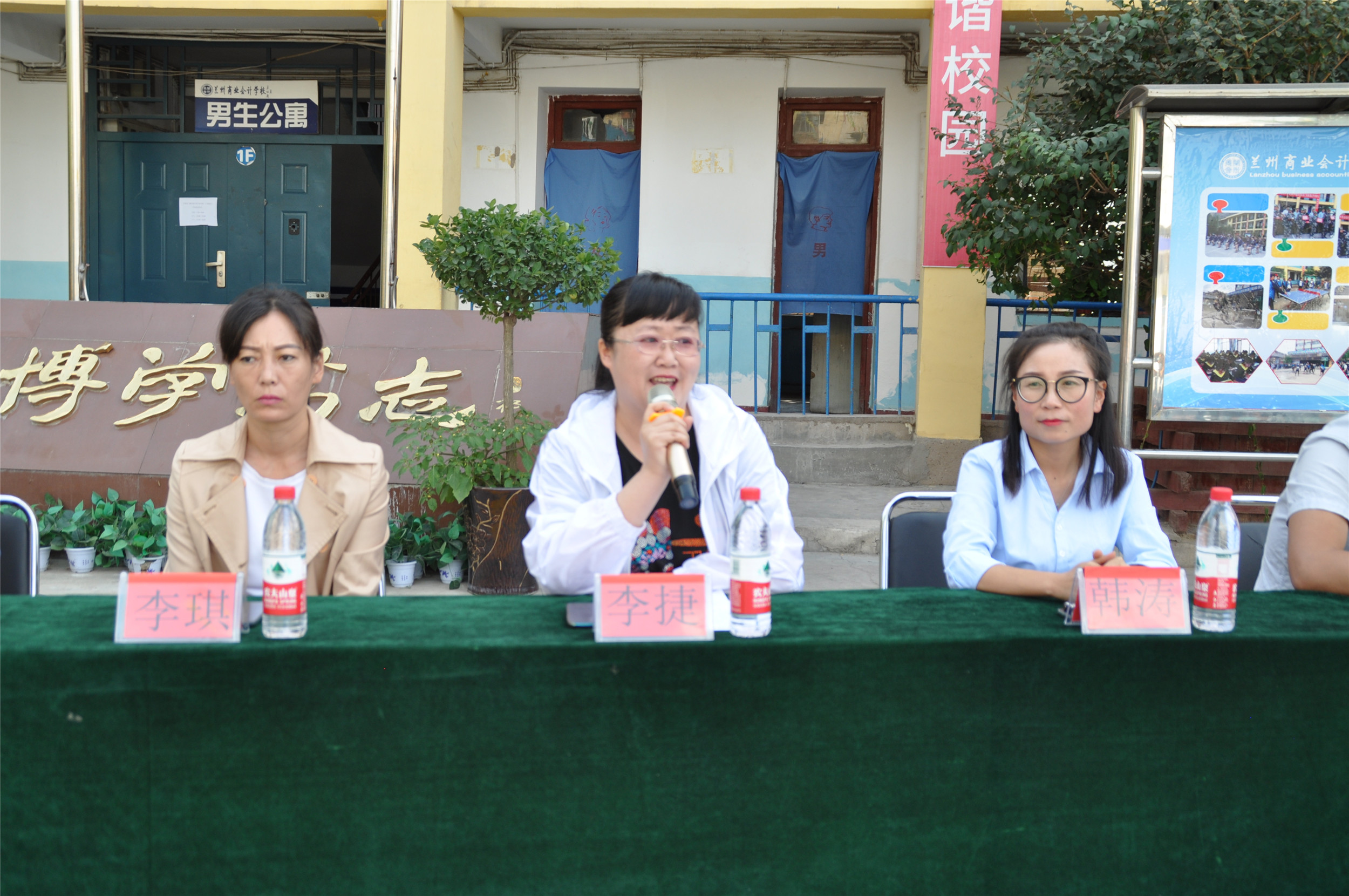 甘肃省广播电视中等专业学校(兰商校区)教务部主任李捷在开学典礼上讲话,李主任从学生学习生活角度对全体学生提出新的希望,她勉励全体学生在新的学期,志存高远、发奋学习,树立远大的职业理想,培养良好的个性和习惯,用自己的努力,追求更精彩的人生。