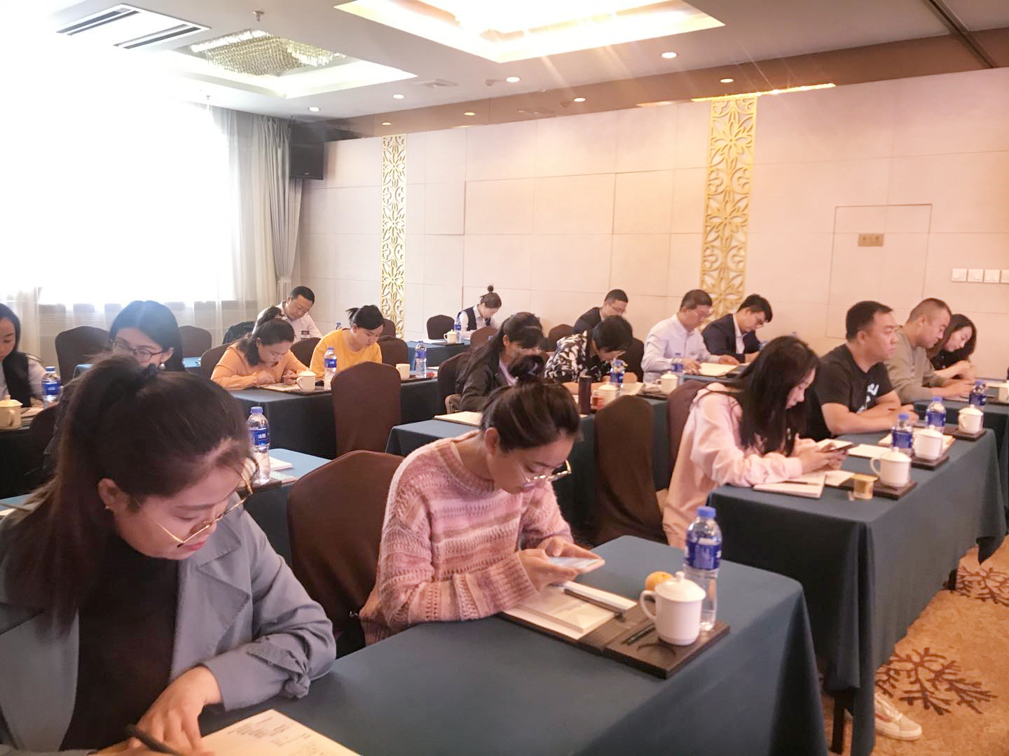在培训中,所有参训人员认真听讲、详细笔记,并与兰商老师就相关业务进行了深度的交流、探讨,现场气氛热烈活跃。培训结束后,全体参训人员统一进行了考试。