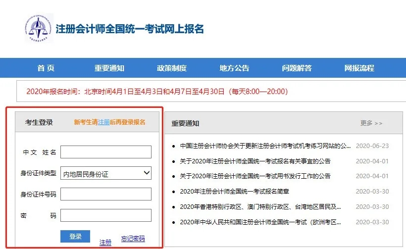 第二步:登录注册会计师全国统一考试网上报名系统