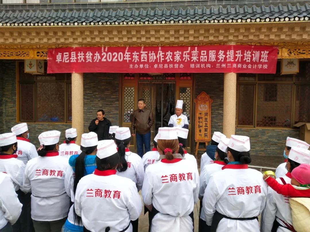 为了不断提升卓尼县农家乐从业人员的职业素养,进一步提高农家乐管理水平和服务质量,维护乡村旅游品牌、提供优质旅游服务,由卓尼县扶贫办主办,兰州兰商商业会计学校承办的“卓尼县扶贫办2020年东西协作农家乐菜品服务提升培训班”在卓尼县杓哇土族乡阿主土家乐隆重举办,卓尼县扶贫办徐志东,杓哇土族乡政府副乡长马小平出席了开班仪式。培训班经过为期12天紧张而充实的培训,圆满完成了各项培训任务。