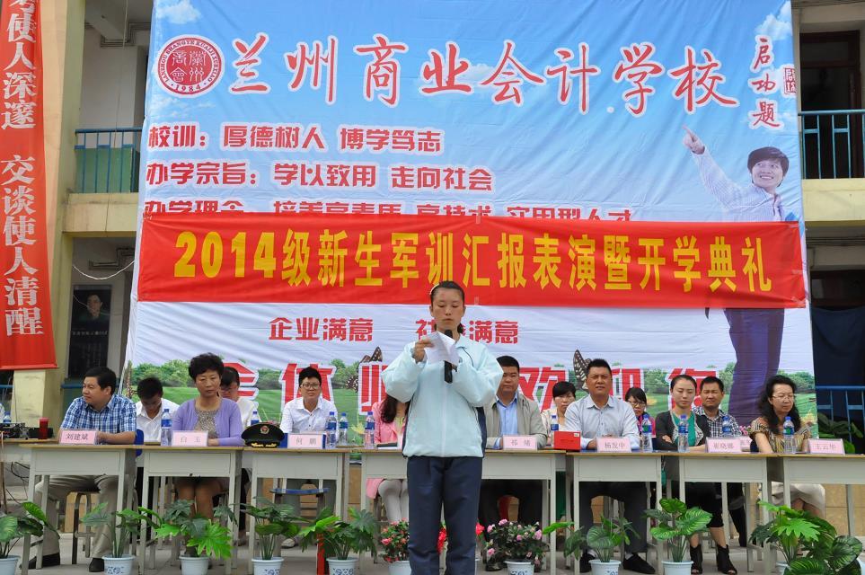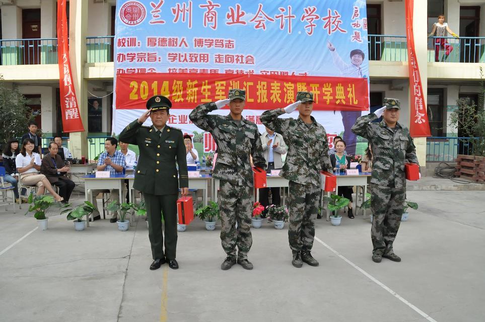 8月29日上午,伴随着嘹亮的军歌,兰州商业会计学校2014级新生军训结训仪式暨开学典礼在学校五泉校区操场举行。“立正!”“齐步走!”……随着军训教官一声声准确有力的口令,由2014级新生组成的5支方队依次在师生面前展示了他们入校一周以来的军事训练成果。转身、行进、敬礼……参加军训的同学们充分展示了新一代青年学生的风采,以出色的军训成果为来到兰州商业会计学校的生活交上了第一份优秀答卷!
