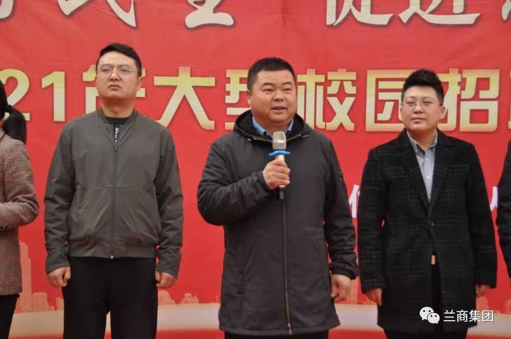 兰商集团董事长祁绪在招聘会上致辞,祁董事长介绍了举办本次招聘会的目的和意义,介绍了兰商实业集团的发展和业务服务范围,希望通过此次招聘会能够为企业和广大求职者搭建沟通交流、招聘就业的桥梁,希望企业能招到合适的人才,求职者能够找到满意的工作。