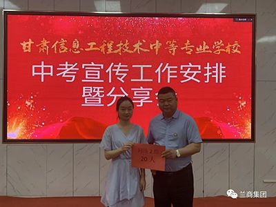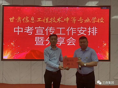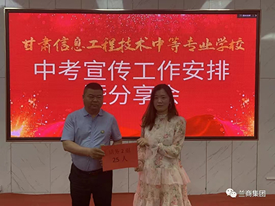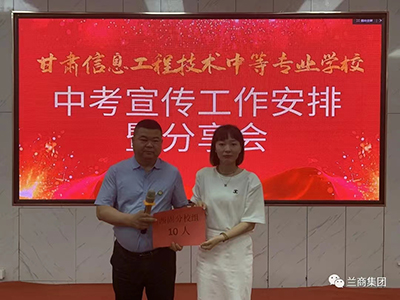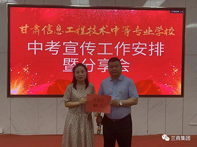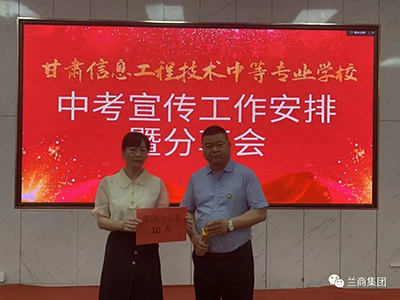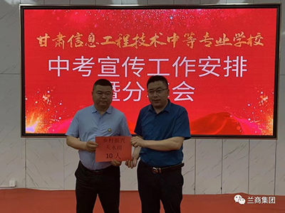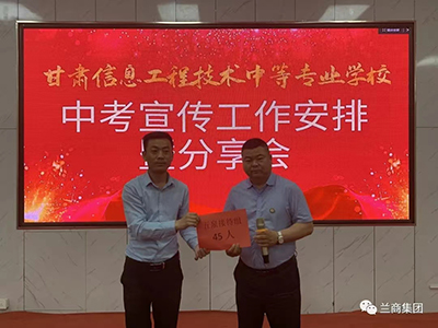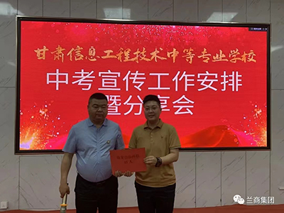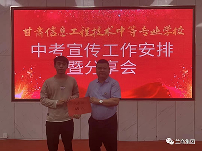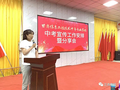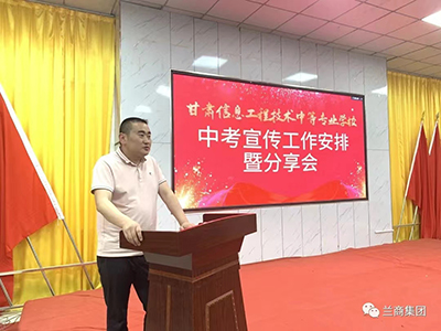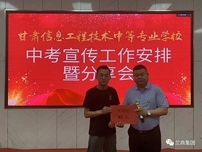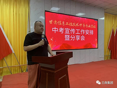 会议上,兰商集团招生办王能亮主任对于全省各地市、县中考考点宣传划分、安排进行宣读。