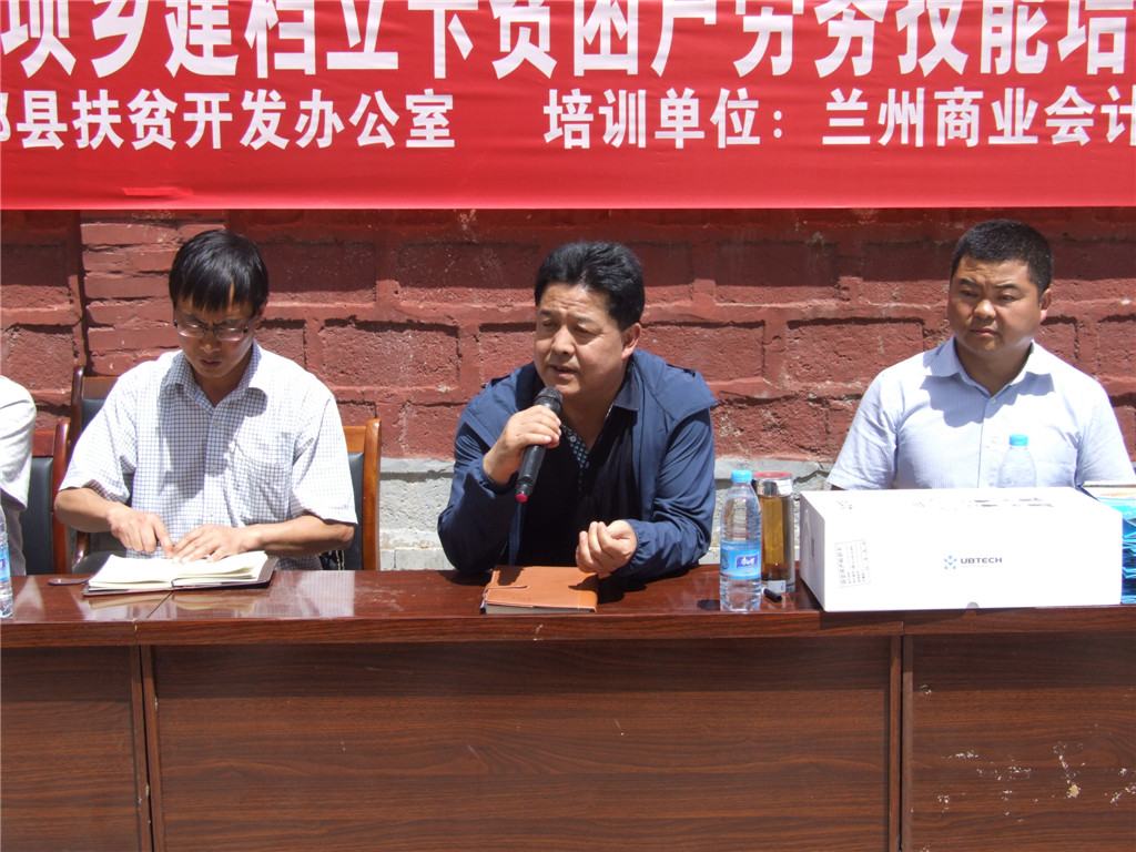 兰州商业会计学校副校长杨发中就此次培训做了具体的安排和要求。强调了此次培训的目的是使贫困户在拿到技能培训证书的同时,切实掌握职业技能专业知识和实践能力,学校将紧密结合当地劳动力的实际需求开展培训,并通过甘肃百效联盟电子商务劳务输转平台妥善输转劳动力,解决好参训学员的就业问题,切实达到脱贫致富奔小康的目标。