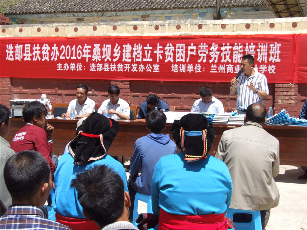 【兰商快讯】 2016年7月26日,甘南州迭部县扶贫办2016年建档立卡贫困户劳务技能培训班第一期在桑坝乡举办,参加此次开班典礼的领导有:迭部县委常委副县长金国正,县扶贫办主任王玉国,副主任鲁永杰,桑坝乡政府乡长闹秀才让,扶贫站长杨志强,兰州商业会计学校校长祁绪、副校长杨发中等。