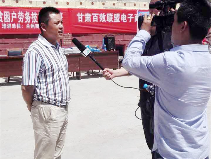 电视台记者采访了兰州商业会计学校扶贫项目培训负责人副校长杨发中。