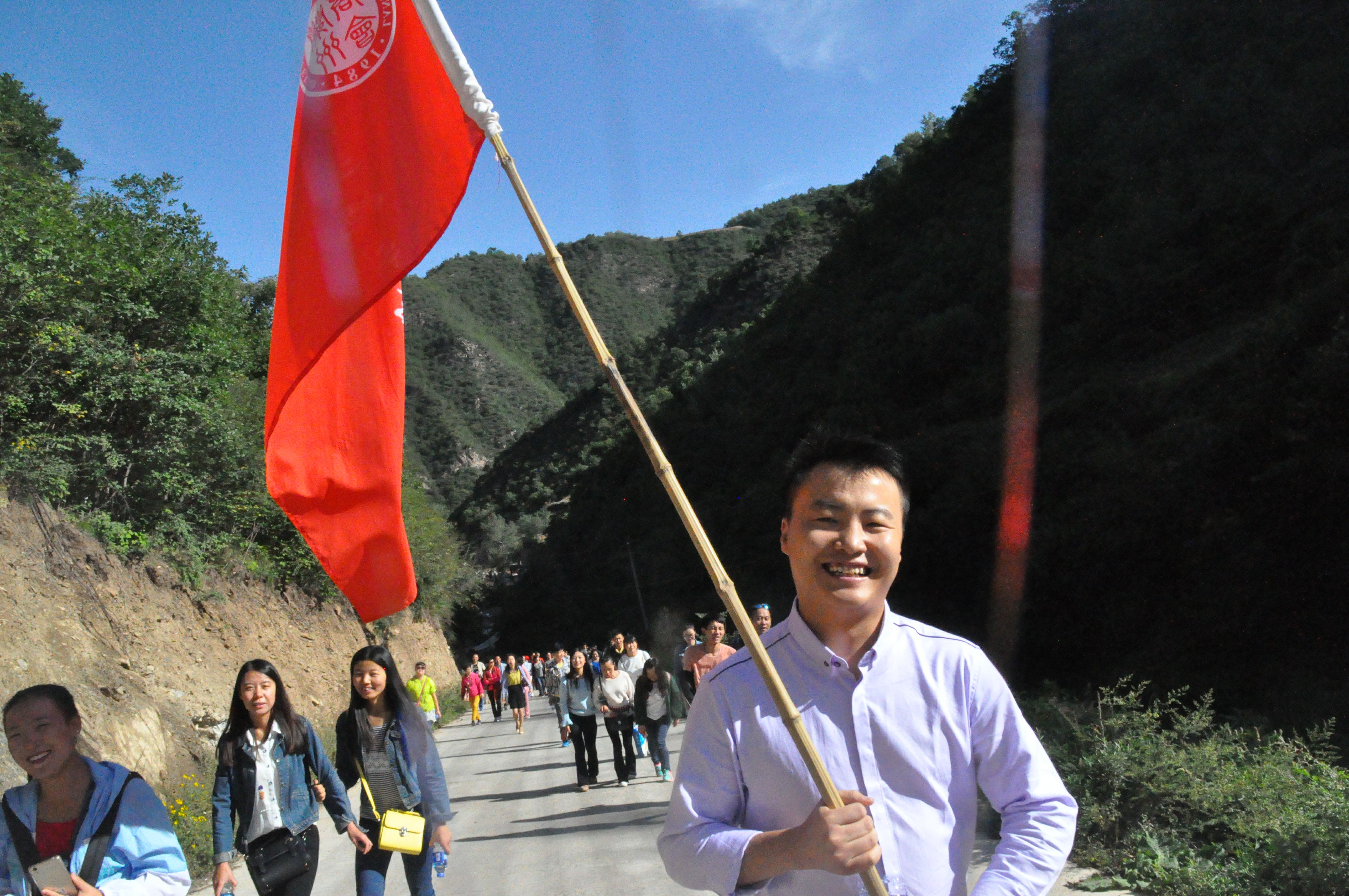 沐浴着和煦的秋日阳光,欣赏着云顶山沿途秀美的风景,校旗在风中飘摇,老师们精神抖擞、笑靥如花、相扶相携,向着山顶挺进,热情地拥抱自然,享受自然的惬意与清爽,整个旅途都充满热情、欢乐的喜悦气氛。