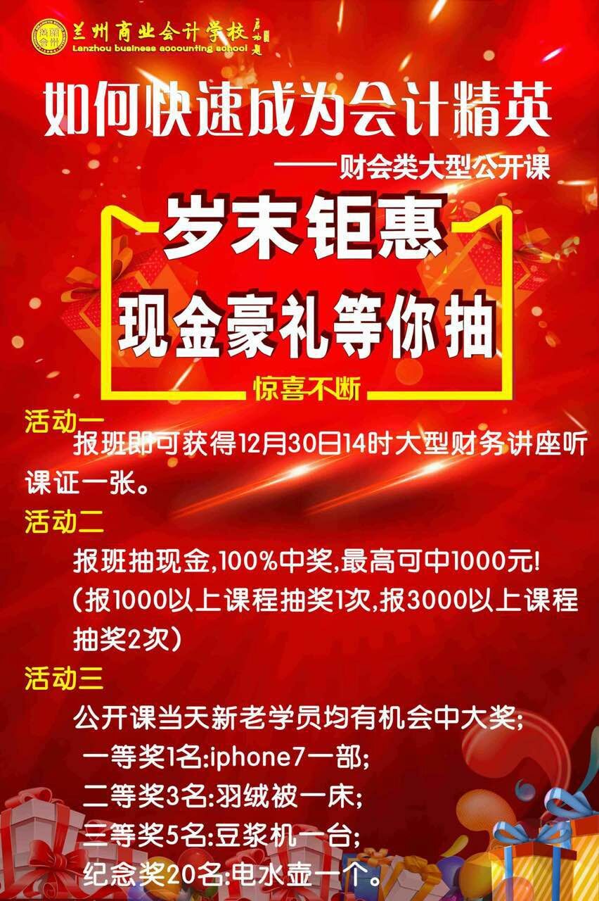 兰州商业会计学校:岁末钜惠——现金、豪礼等您来抽。