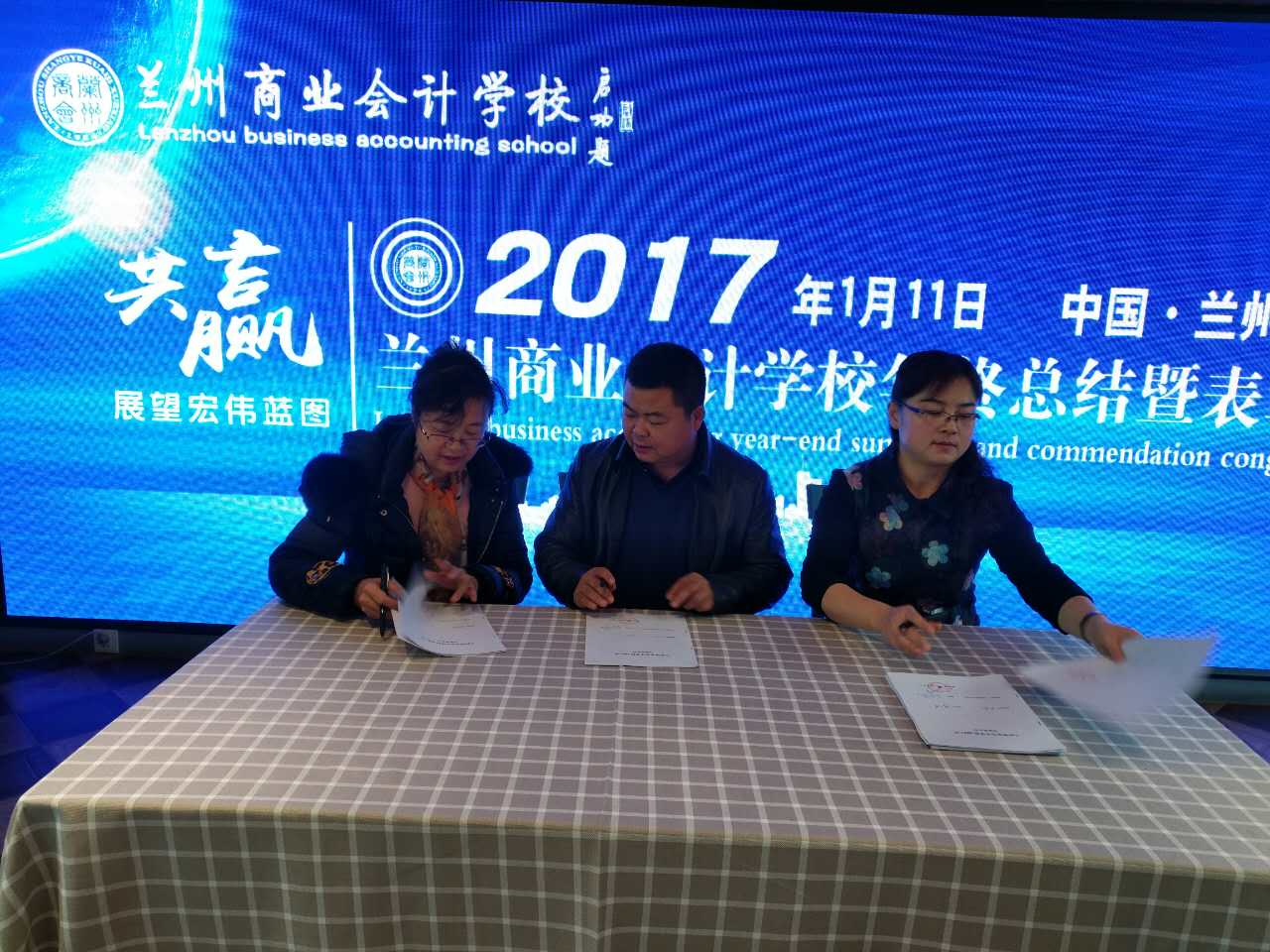 兰州商业会计学校年终总结暨表彰大会于1月11日上午隆重召开。校长祁绪、书记王今强、副校长杨发中、财务室会计杨娟平、白玉及各部门主任一起出席了大会,学校全体教职工共70余人参加了此次会议。学校今年进行了机构改革,新成立了销售部、总教务部、市场部,新部门主任也出席了此次总结会,本次会议主要就2016年工作进行回顾总结,并对2017年工作进行部署,会议由综合办主任李琪主持。