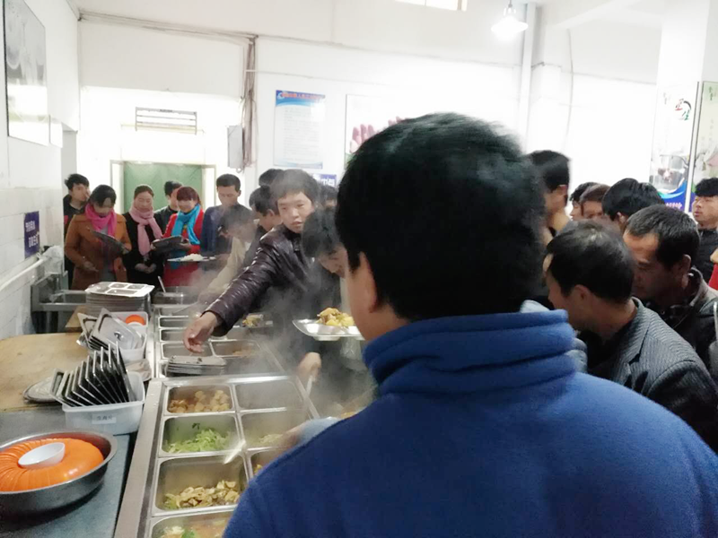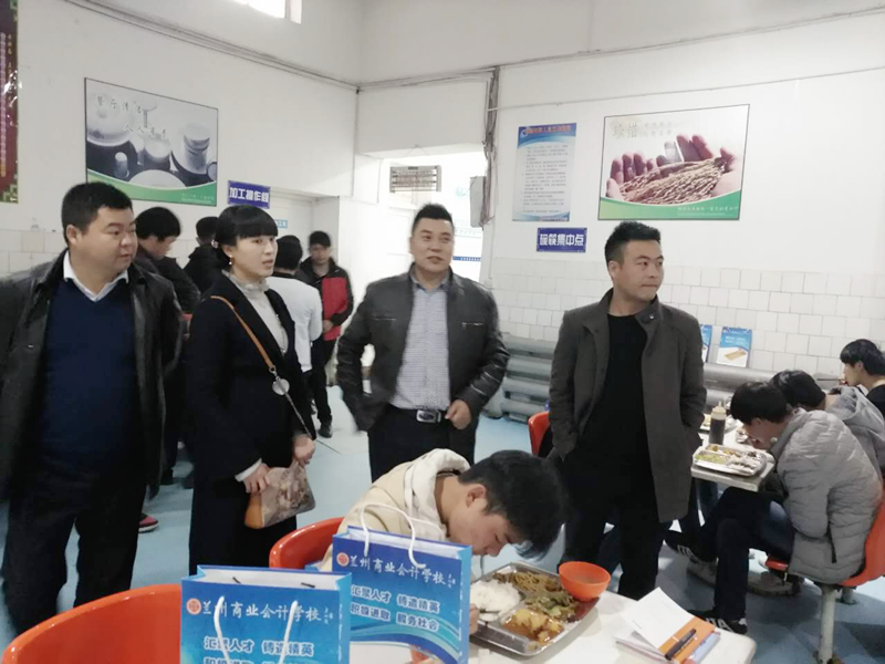 (兰州商业会计学校校长携临潭县扶贫办负责人视察学员就餐情况)