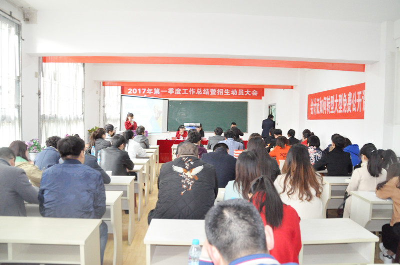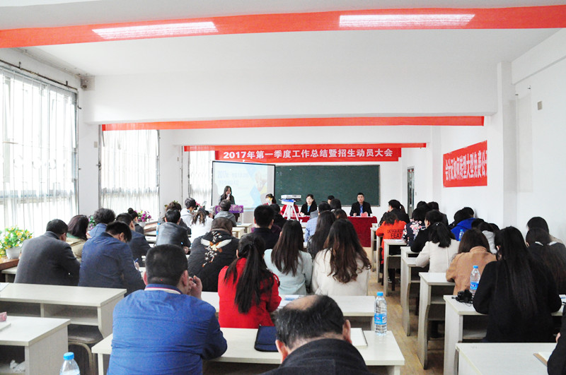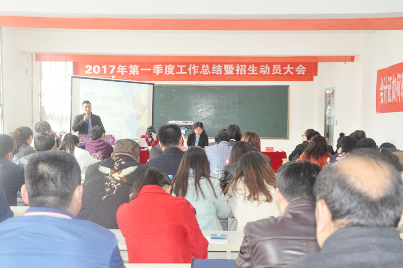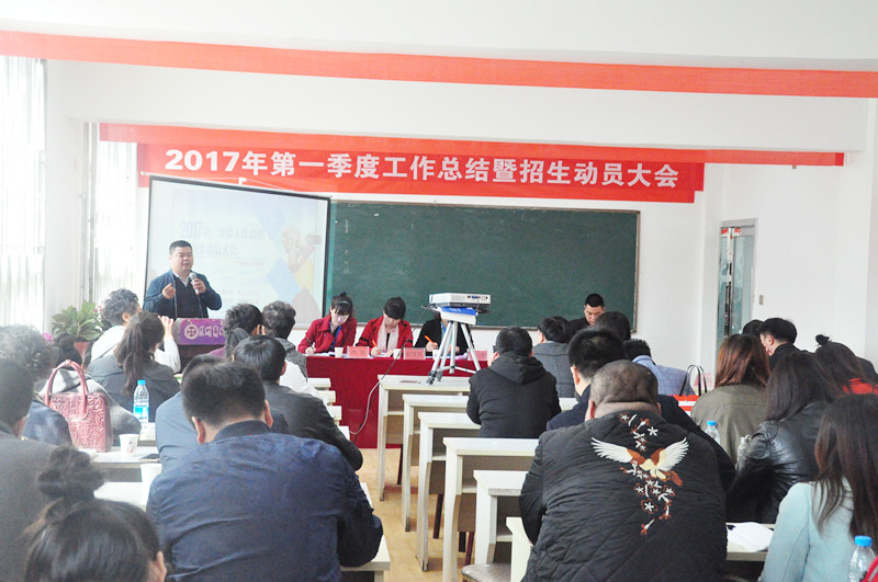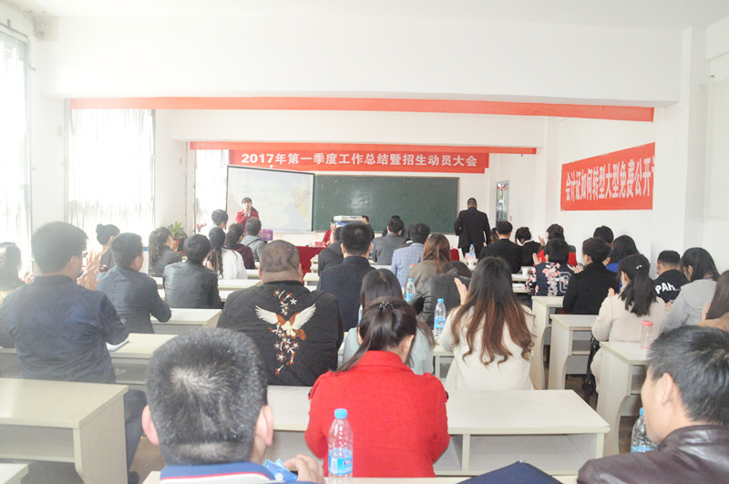 此次会议不仅仅是2017年第一季度工作总结大会,同时也是学历招生的动员大会,更是全体员工交流学习的大会,相信通过此次会议,全体教职员工能够更加明确学校的发展方向、发展思路,真正意识到学历招生的重要性,能够更加紧密地凝聚在一起,为学校的发展献计献策、贡献力量。(第一季度工作总结暨招生动员大会现场)