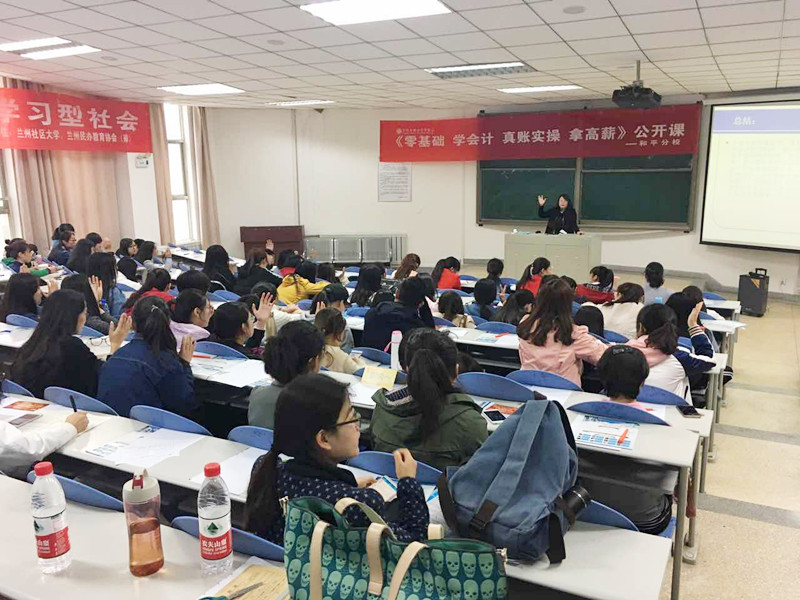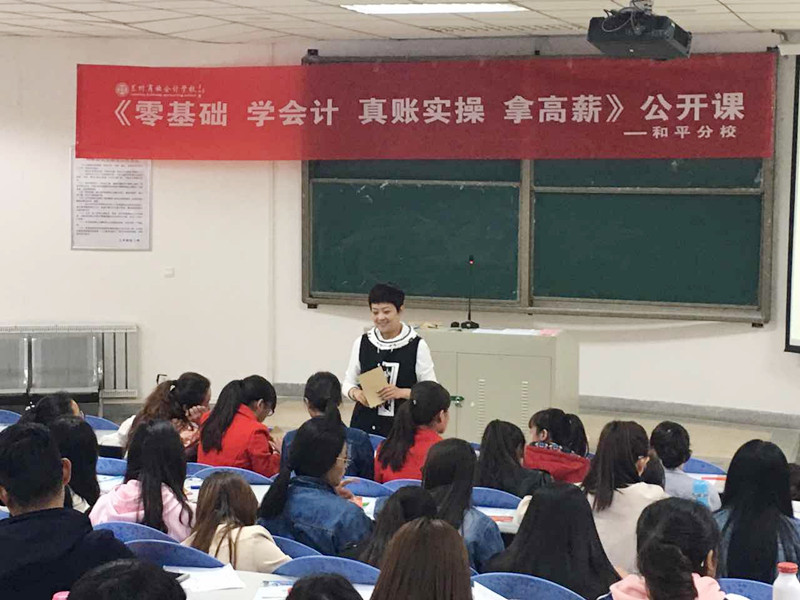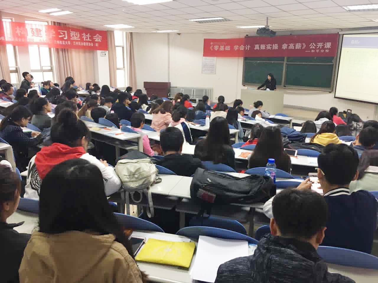 4月8日下午2:00,兰州商业会计学校《零基础 学会计 真账实操 拿高薪》巡回公开课第八站在兰州财经大学F楼308教室圆满结束,公开课现场人气爆满,学员热情高涨,授课效果显著。