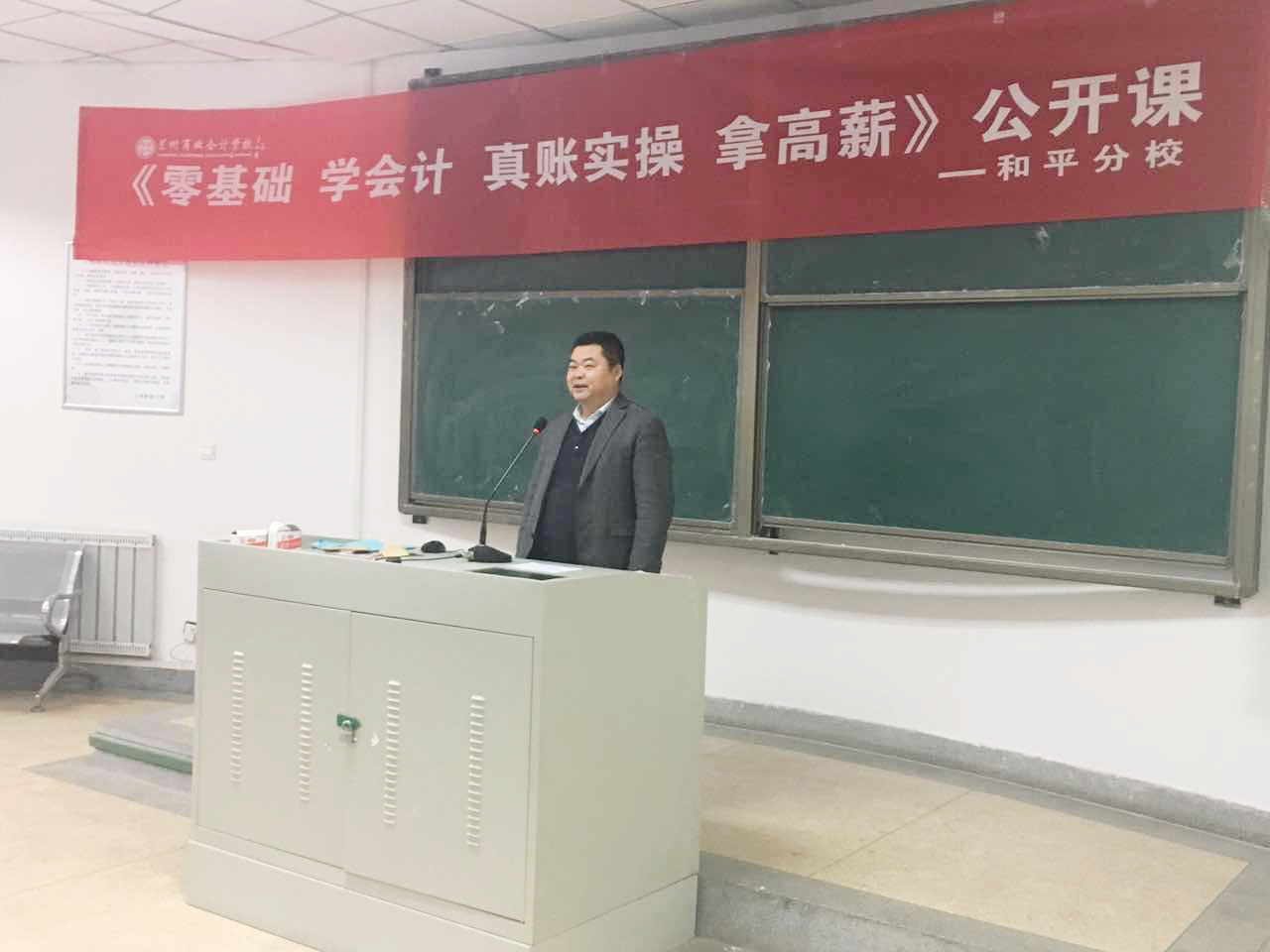 兰州商业会计学校祁校长在公开课上发表讲话,为学员讲述了学习会计、不断提升的重要性。